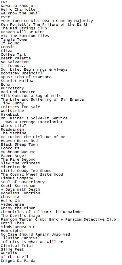 План таков, скачиваю все визуальные новеллы из этого списка и играю как минимум два часа, если там не будет текста уровня Пелевина, Planescape или Disco Elysium, то мгновенный дроп.