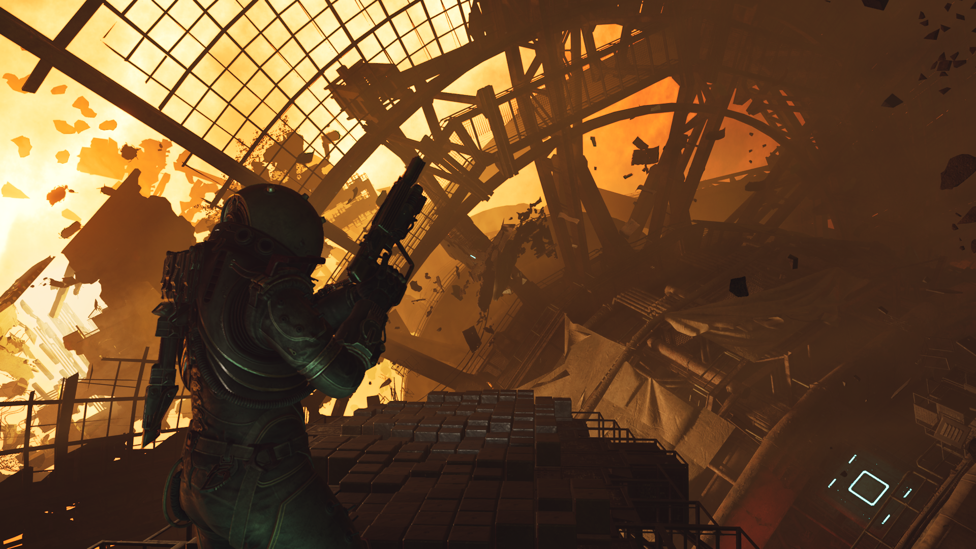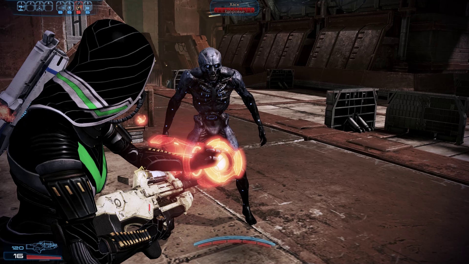 Ок, распишу подробнее про геймплей. Представьте Дед Спейс, но без разнообразного оружия, из которого по кайфу стрелять, без распиливания конечностей и без гиммиков с гравитацией. Вот из того что осталось можно сварганить такую игру (а то и несколько игр). Впрочем, пизжу, тут таки спиздили гравитацию из ДС, но сводится все к тому, что ты направляешь прицел на платформу, жмешь Е и тебя автоматически к ней присасывает. Никаких полетов, никакого комбата в невесомости, ничего хоть сколько-нибудь интересного тут, конечно же, нет.