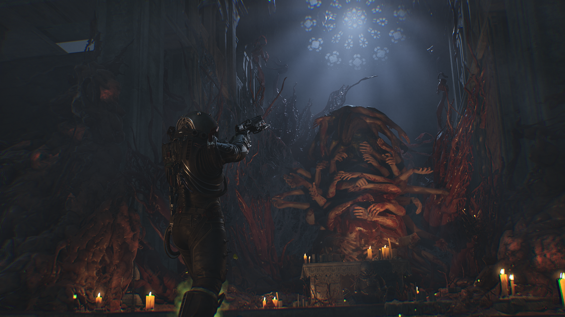 Дизайн врагов, кстати, нагло спиздили с РЕ5. В частности враги во второй половине, которые 1в1 напоминают Уробороса - черная жижа с оранжевыми "слабыми точками". Потоньше можно?