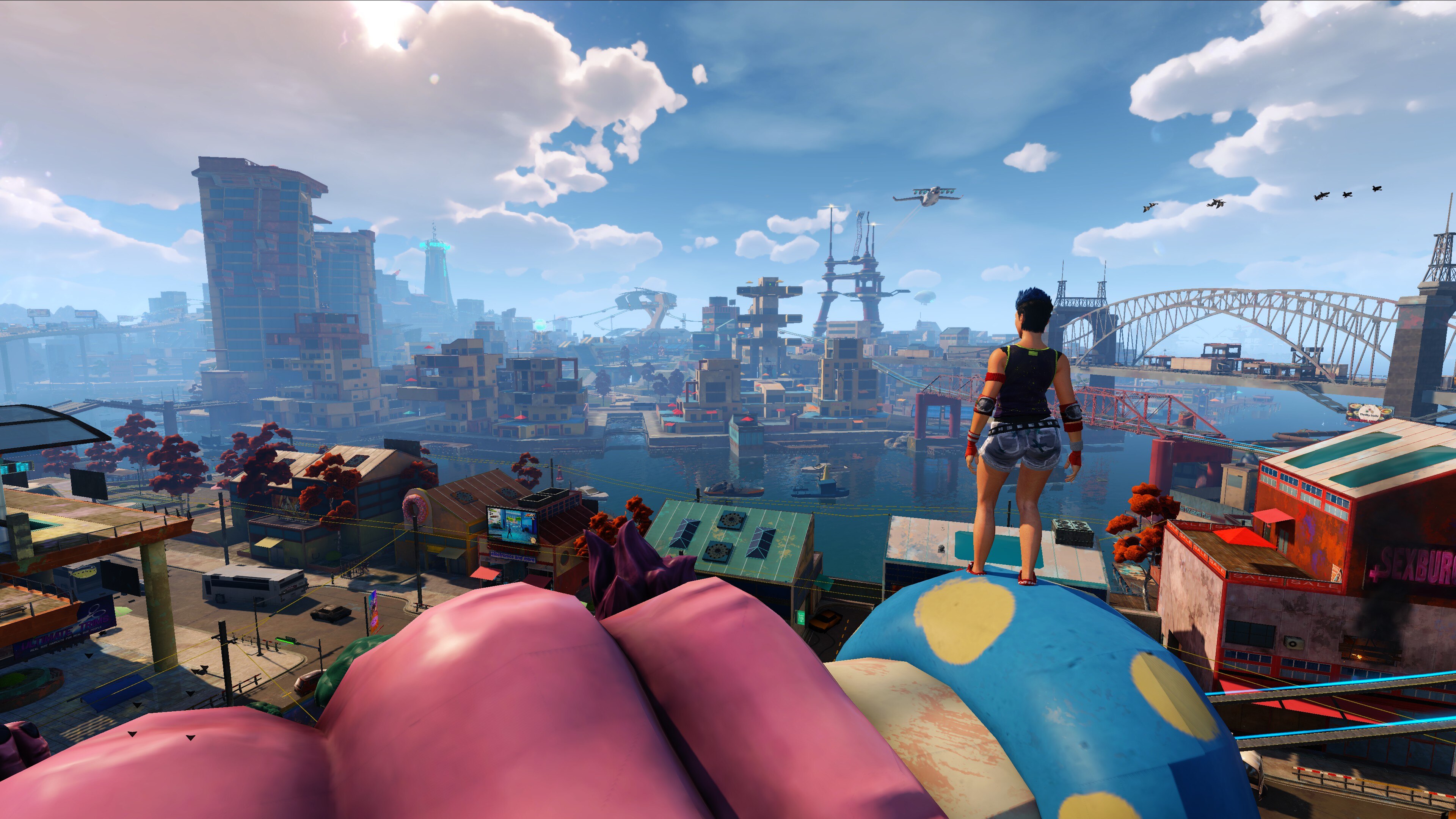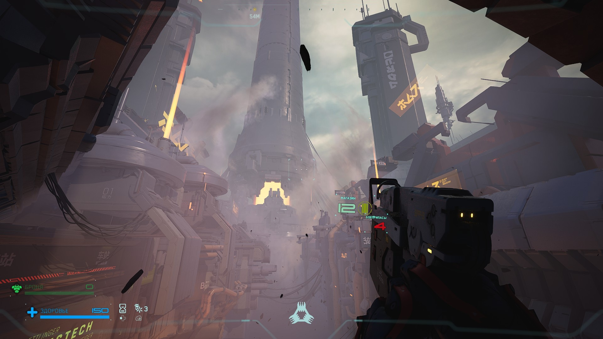 В игре миллион одинаковых мест. И я сейчас не про дизайн, который дает примерно два биома на всю игру с их вариациями. Основная проблема - набор задач. Есть зиплайн-секции смежные с бегом по стенам, есть арены обычные, есть арены, где стоят выдвигающиеся столбы, которым нужно выстрелить в "глаз", потому как этот всевидящий глаз наносит урон по ГГ просто наблюдая за ней, а после попадания начинается отсчет до восстановления глаза. Ну и просто секции, где нужно без боя от этих глаз уворачиваться и прыгать.