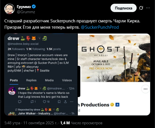 Стартанул Ронина. Сложность убрал на среднюю. Не разобравшись с механиками ловить на сложном нехуй. Есть стелз, есть боёвка (по традиции взял катану и одати). Хз, пока не понял. Точно бодрее Цусимы. Механик понапиздили вообще ото-всюду - и подпрыгивание на враге из ДМЦ, и после серии RB "дабы восстановить ЦИ и продлить серию" из Нио, и стелз отголосками из Тенчу (но чёт до выбора анимации убийства так никто и не дошёл, хотя блять ну это же вы делали, алло). Отсылка к легенде жанра (2ой скрин) понравилась и ламповостью повеяло. Больше пока нихуя сказать не могу, потому что постоянно отвлекают.