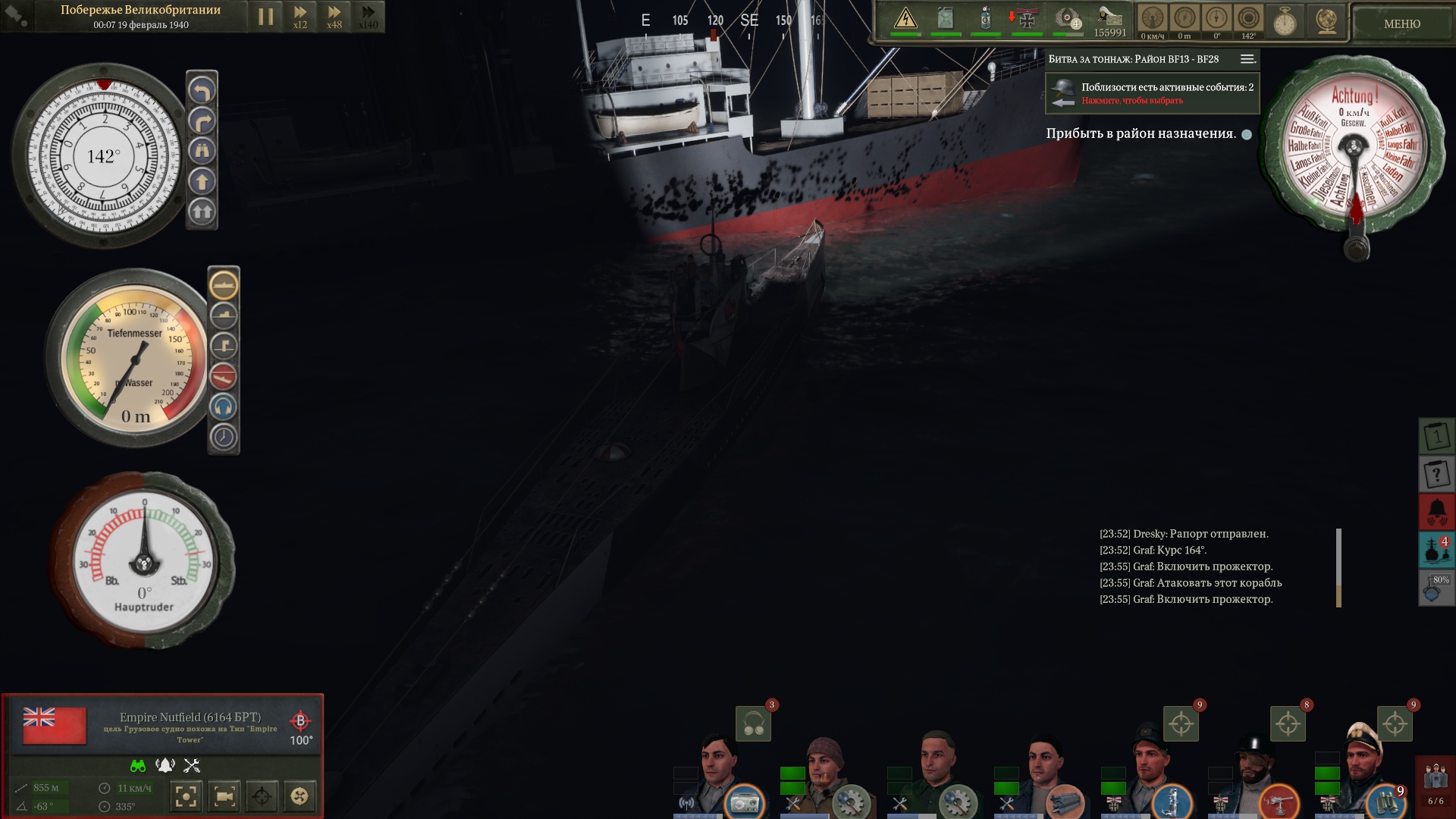 Какой-то инвалид на U-50 частично спугнул прибрежный конвой, сообщений не посылал, думал выслужиться. В итоге три грузовоза шли с разной скоростью, один топил вообще 18 км, как будто его уже поджаривали. Раскидал все торпеды, даже загрузить из запаса успел, 2 промаха, 3 попадания, торпед больше нет. 2 груза тонут, один стоит на месте. Думаю, чё за хуйня. Поливаю его из зенитки, тараню - ничего. Начинаю обходить его - предупреждение о мели. Отправляю матроса чекнуть эхолот. 30 метров под килем. Осадка грузовоза 8.5, высота 35. То есть сука НЕ МОЖЕТ затонуть, просто бултыхается на месте, как говно, мне его не засчитают, потому что он не может утонуть в земле. И высадиться на него я не могу. Вот это подстава.