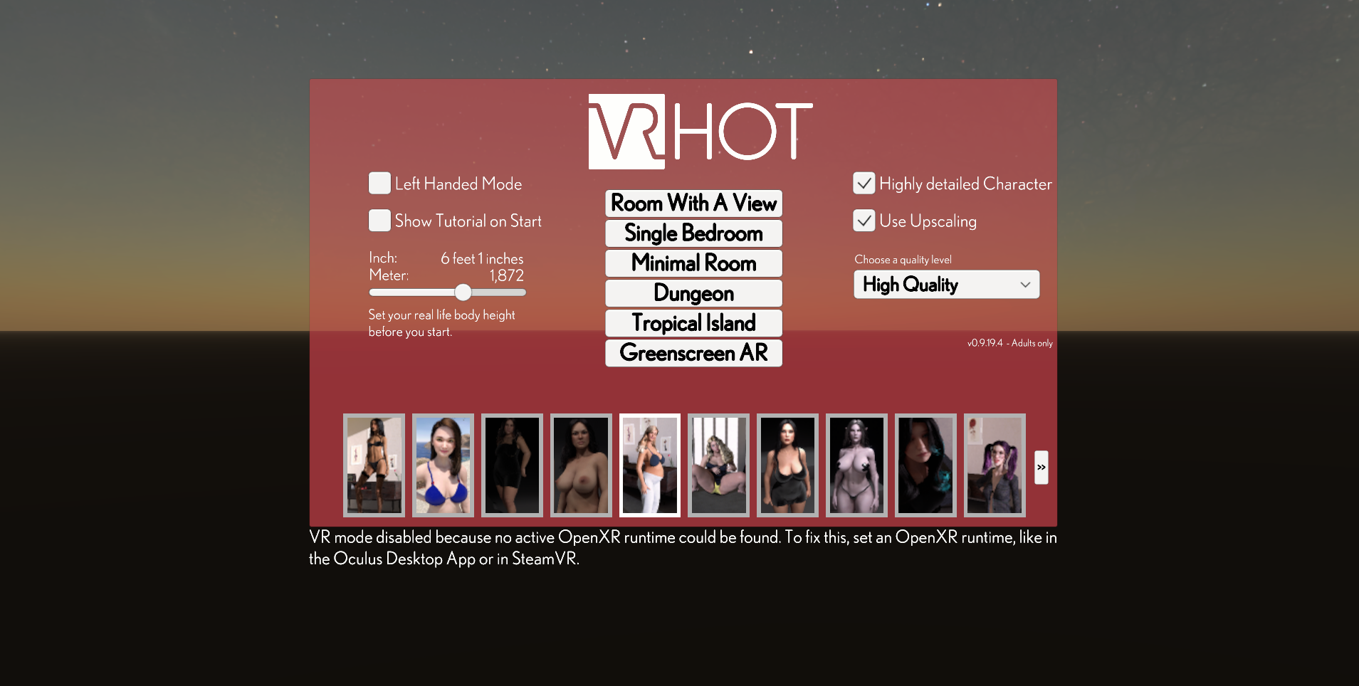 >>9787512 >Выйди из треда, пожалуйста. Почему? >>9787516 вам это неиграбельный глючный кал, я пробовал и это дерьмо, а в модах можно только наблюдать за позами, а в вр хоте я сам деру бабу как хочу своими руками, особенно если в виртуал десктопе подрубишь гринскрин и тёлка будет прямо по твоей хате ходить и ебать её на своей кровати можно
