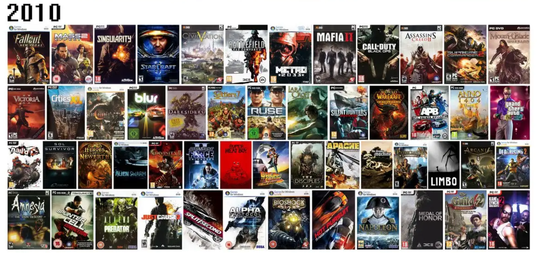 >>9790203 Может было и лучше чем сейчас, но не настолько лучше, как это преподносят. Как обычно: 2-3 нормальные игры за год и тонна проходняка. Смотрю на список с пика - играл в игры 3, пару игр может быть бы пощупал, еще, но остальное вообще не интересно.