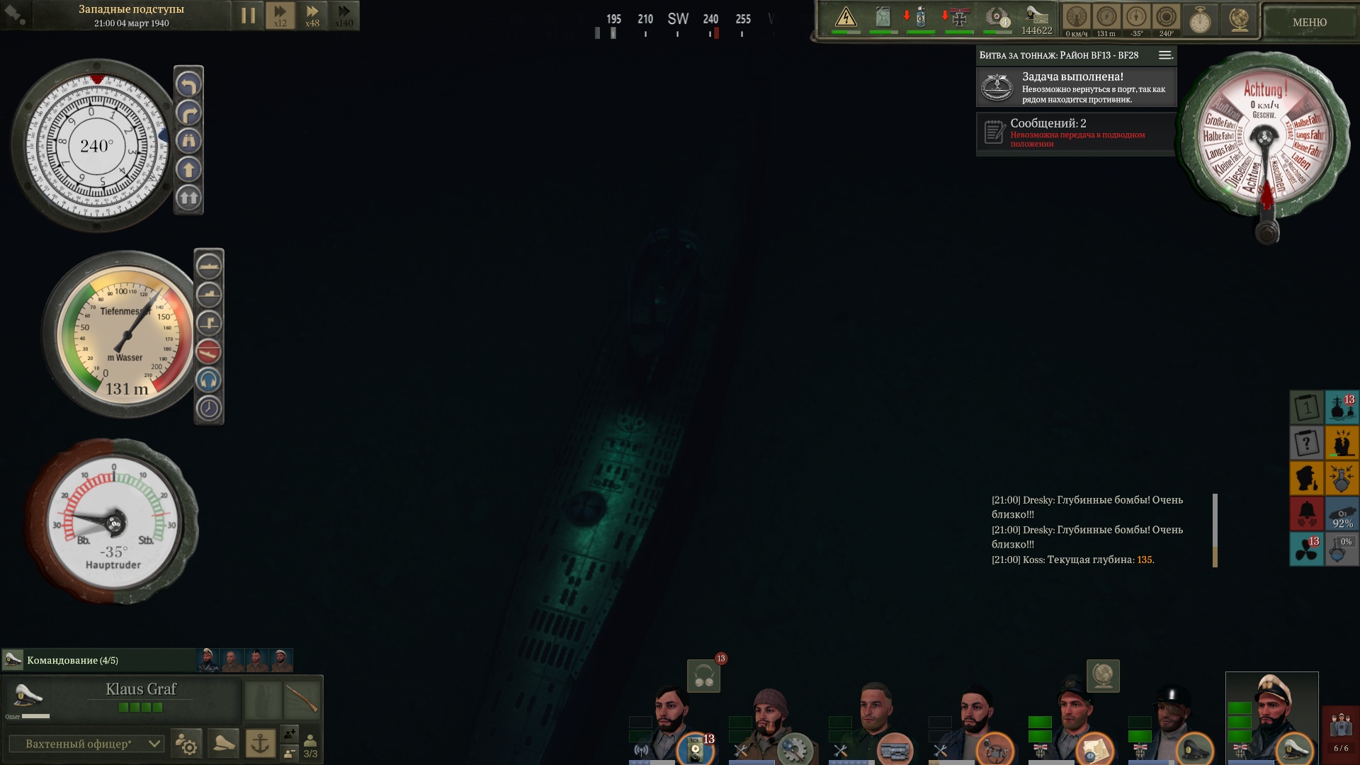 Торпедирую на ходу, торпедирую кручеными, и посреди ночи, как из жопы ниггера. По-нормальному не торпедирую, вкусы моего кэпа весьма специфичны. На глаз попадаю, на точные расчеты нет. Все еще на легкой береговой патрульной лодке. Закончил битву за тоннаж, думал за следующую дадут еще один чертеж и наконец нормальная подлодка будет. Но чет пока нету. Послали в Норвегию.
