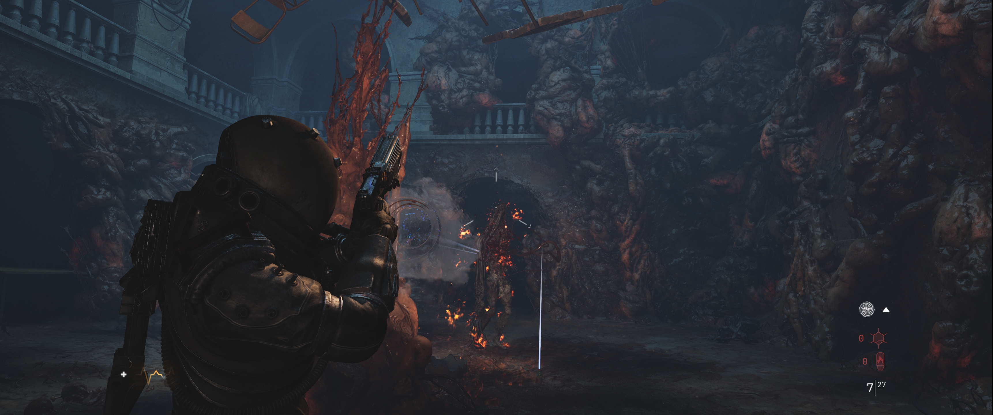 Я ещё с первых минут понял, что у этой игры будет просто полная пизда с патронами, да и вообще стрельба тут ощущается пиздец хуёво. Поэтому просто въебал себе через cheat engine дохуя ресурсов и бесконечные патроны. Хожу чисто ради сюжета и атмосфЭры. Нахуя они в рельсовом кинце сделали такую духоту я хуй знает.