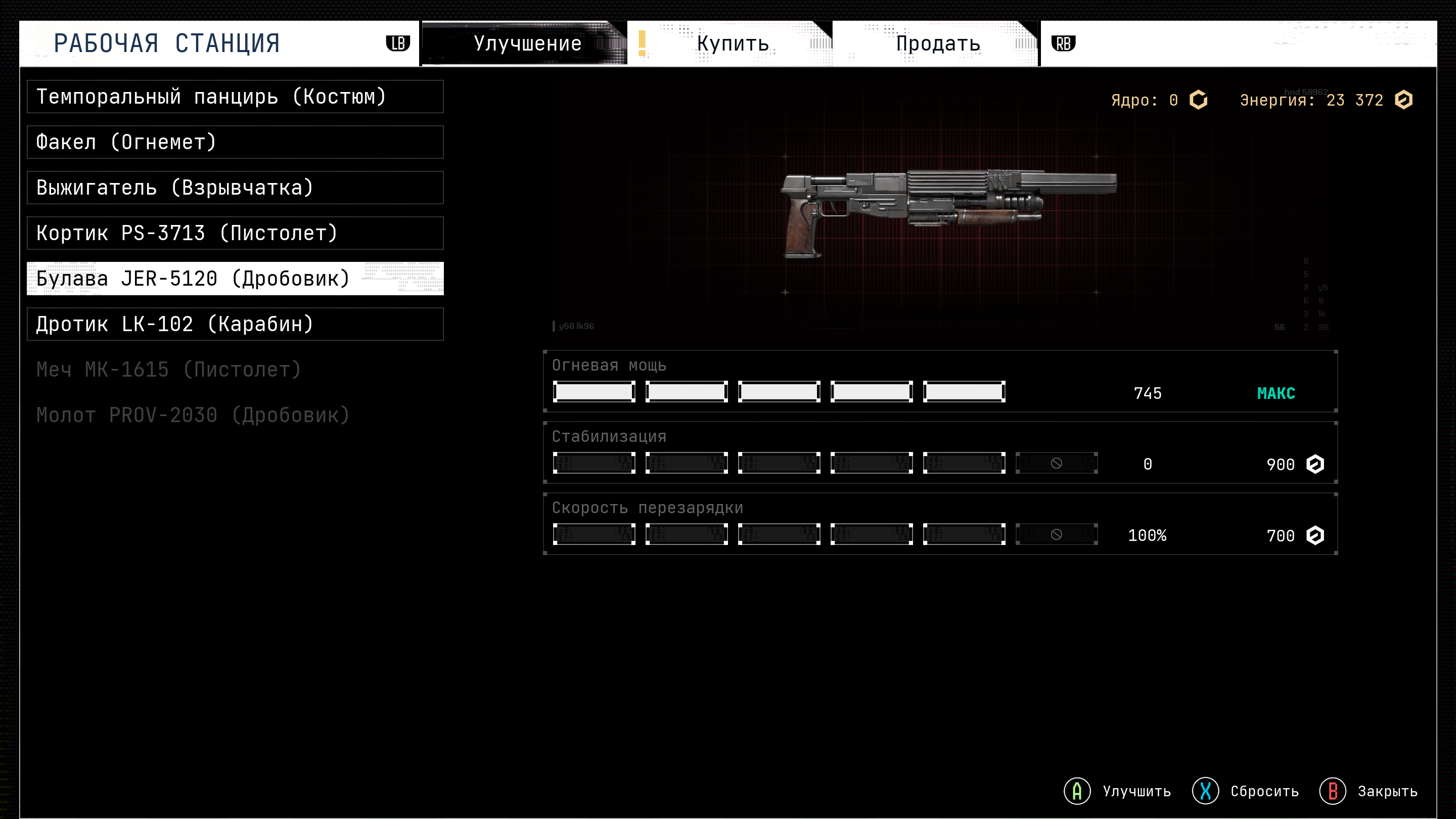 Прокачанный Арбалет самое мощное оружие в игре, валит некоторых боссов с одного выстрела, можно делать патроны из ядер. Сильно помог в финальной битве, когда Исследователь стоял неподвижно, сразу валил его на землю.