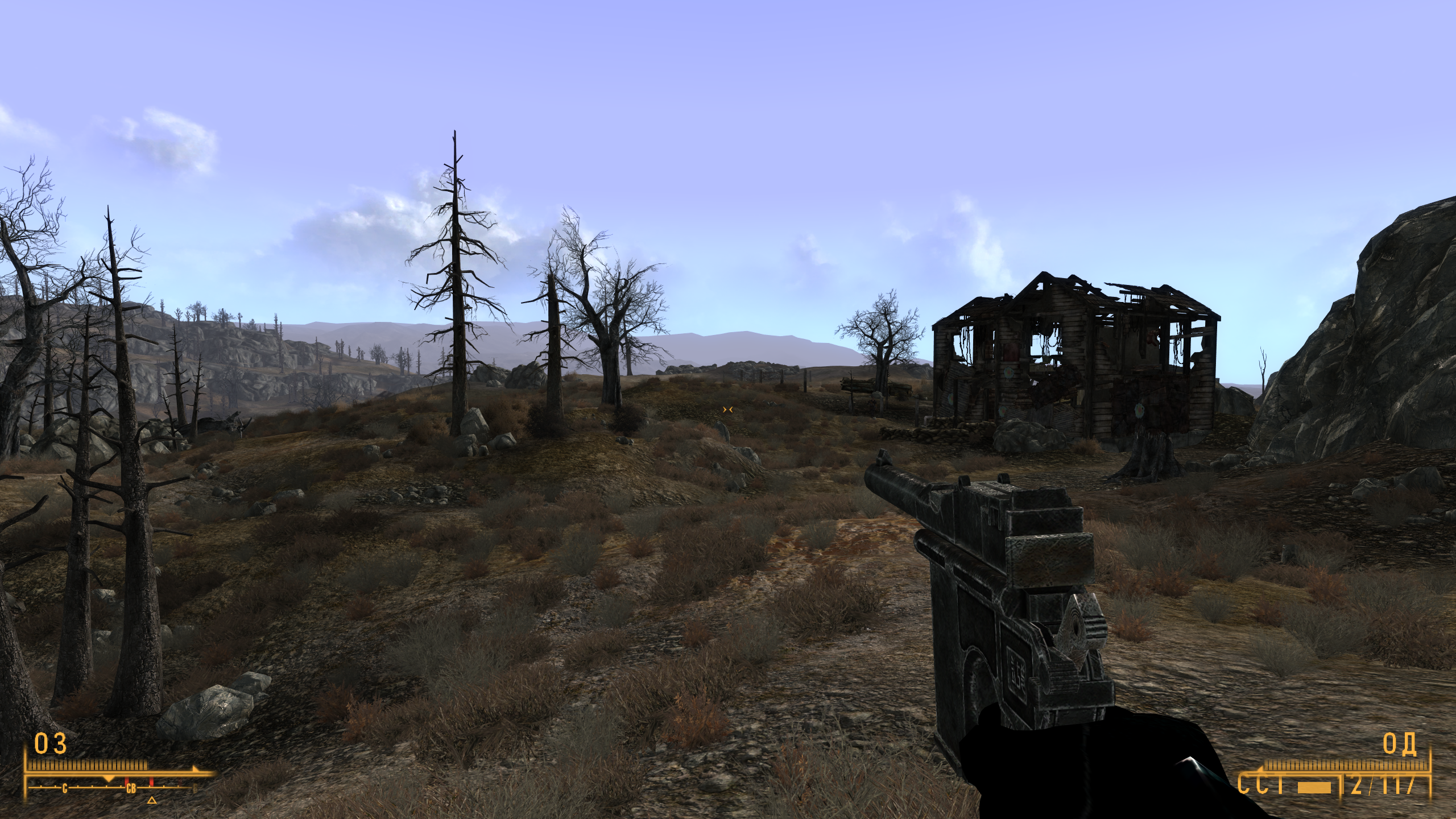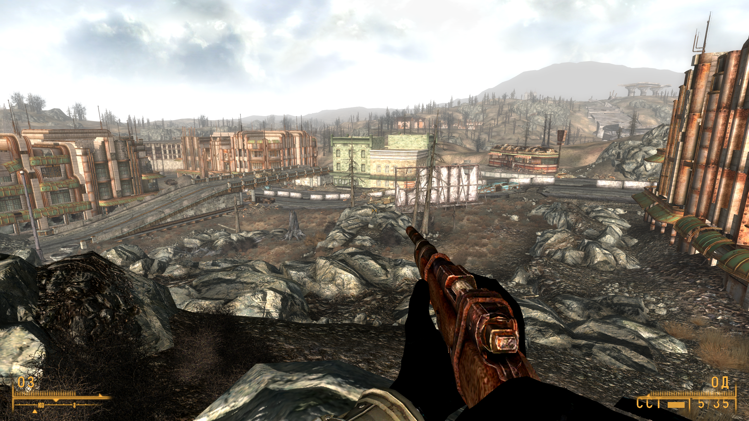 Это твое мнение, мне нравится неспешно пиздовать по пустыне с кактусами под кантри ненавязчивый, это больше похоже на постапок, чем зеленый фильтр с бесконечными помойками унылыми и развалинами через 200 лет. В вегасе хоть жизнь наладилась, есть подобие государства с выращиванием провизии, есть конкуренты государству, а в трешке город вокруг ядерной бомбы, это же так апокалиптично и логично.