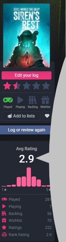 Первая игра от Китайской Комнаты, которая хоть что-то из себя представляет. Тут мало механик и все они повторяются, а также практически несуществующие головоломки, но зато неплохо проработано окружение и мир в целом. Начальник мудак, добрые работяги на бугоровой платформе, ГГ который реагирует на происходящее. Понравилось что стелс секции не душные и короткие, монстры реально криповые. Сюжет конечно такое себе, до последнего думаешь что это всё окажется сном собаки.