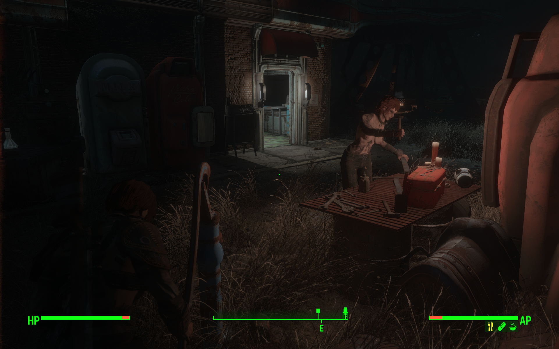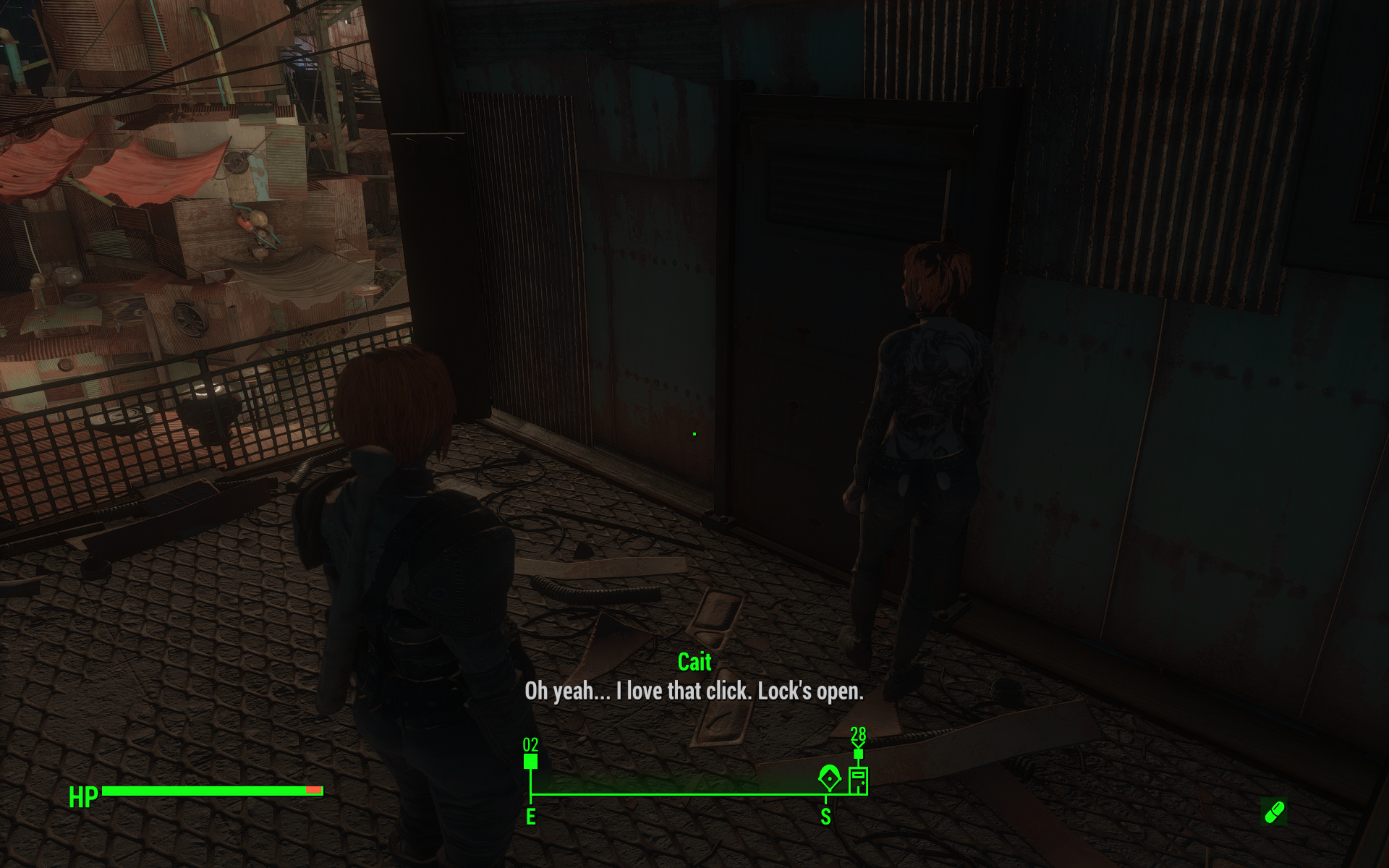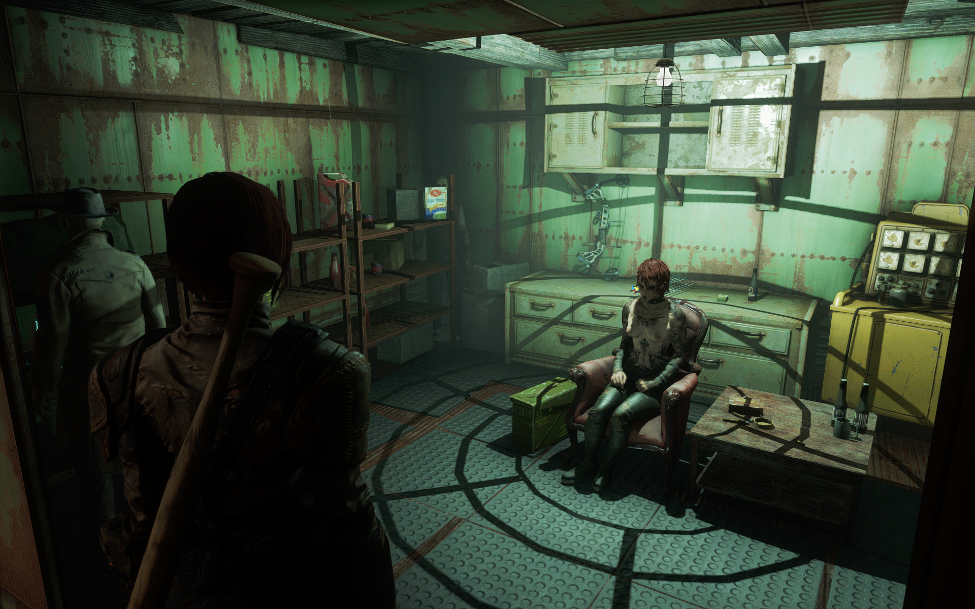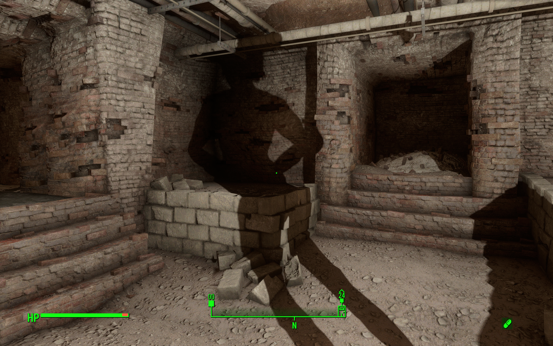Интересно зачем моддер положил этот лук Кэллогу, но предположим. Тип вообще не понимаю смысла луков сложнее самодельного. А в далеке видно Карвегу... И да, я пойду по пути Подземки в этом ране, так что идем на первую их миссию.