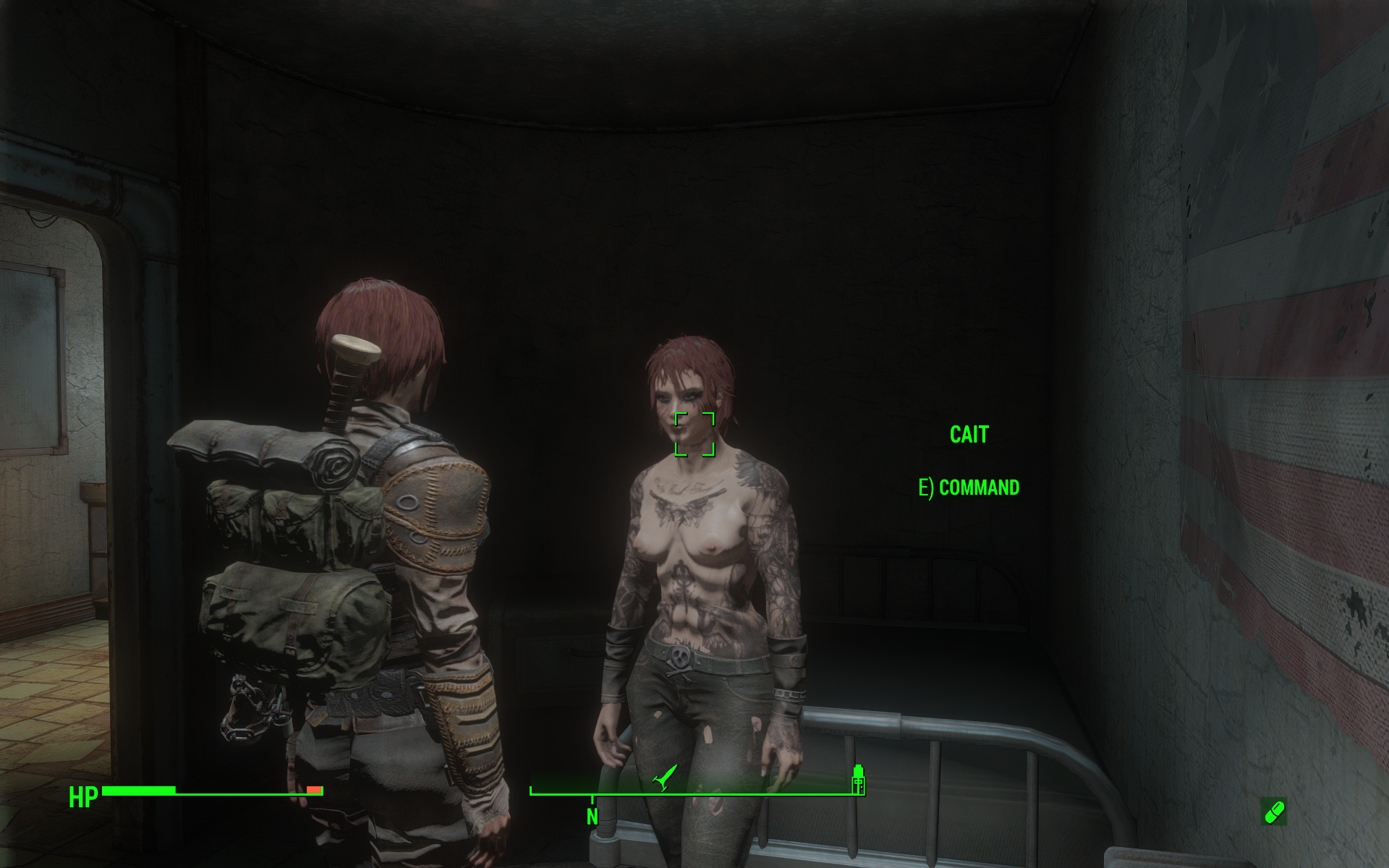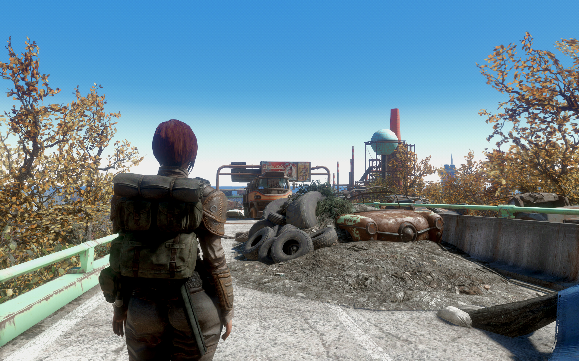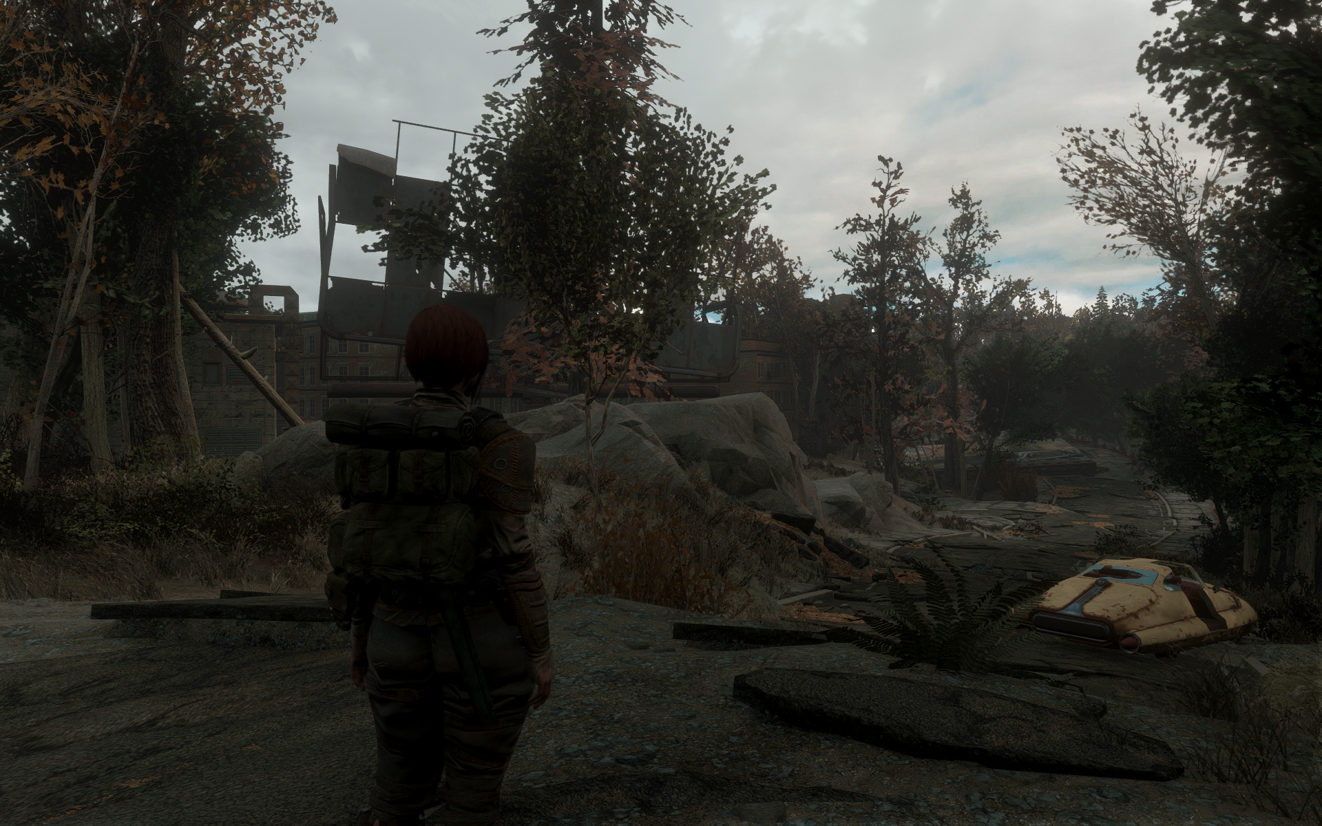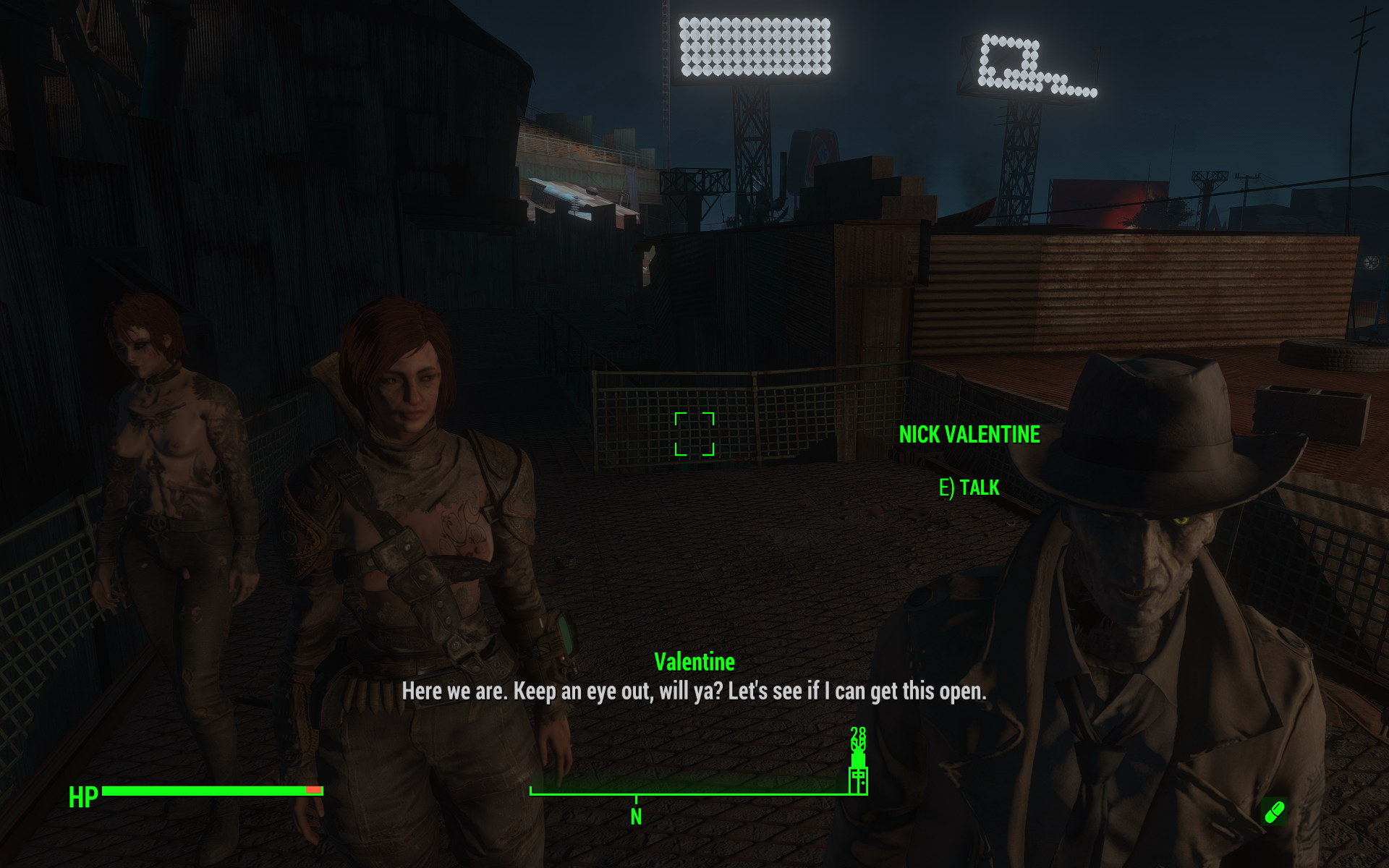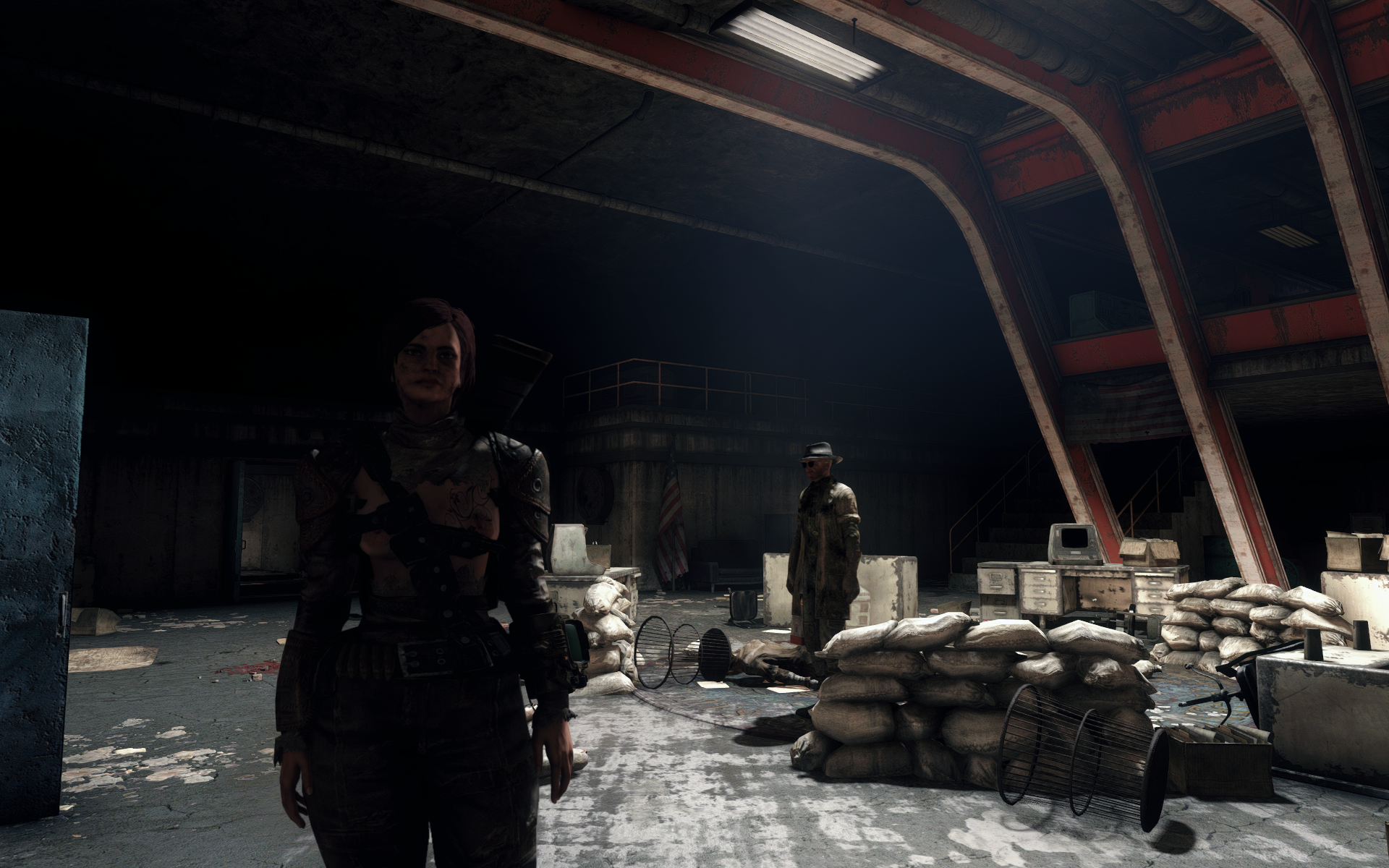 Интересно зачем моддер положил этот лук Кэллогу, но предположим. Тип вообще не понимаю смысла луков сложнее самодельного. А в далеке видно Карвегу... И да, я пойду по пути Подземки в этом ране, так что идем на первую их миссию.