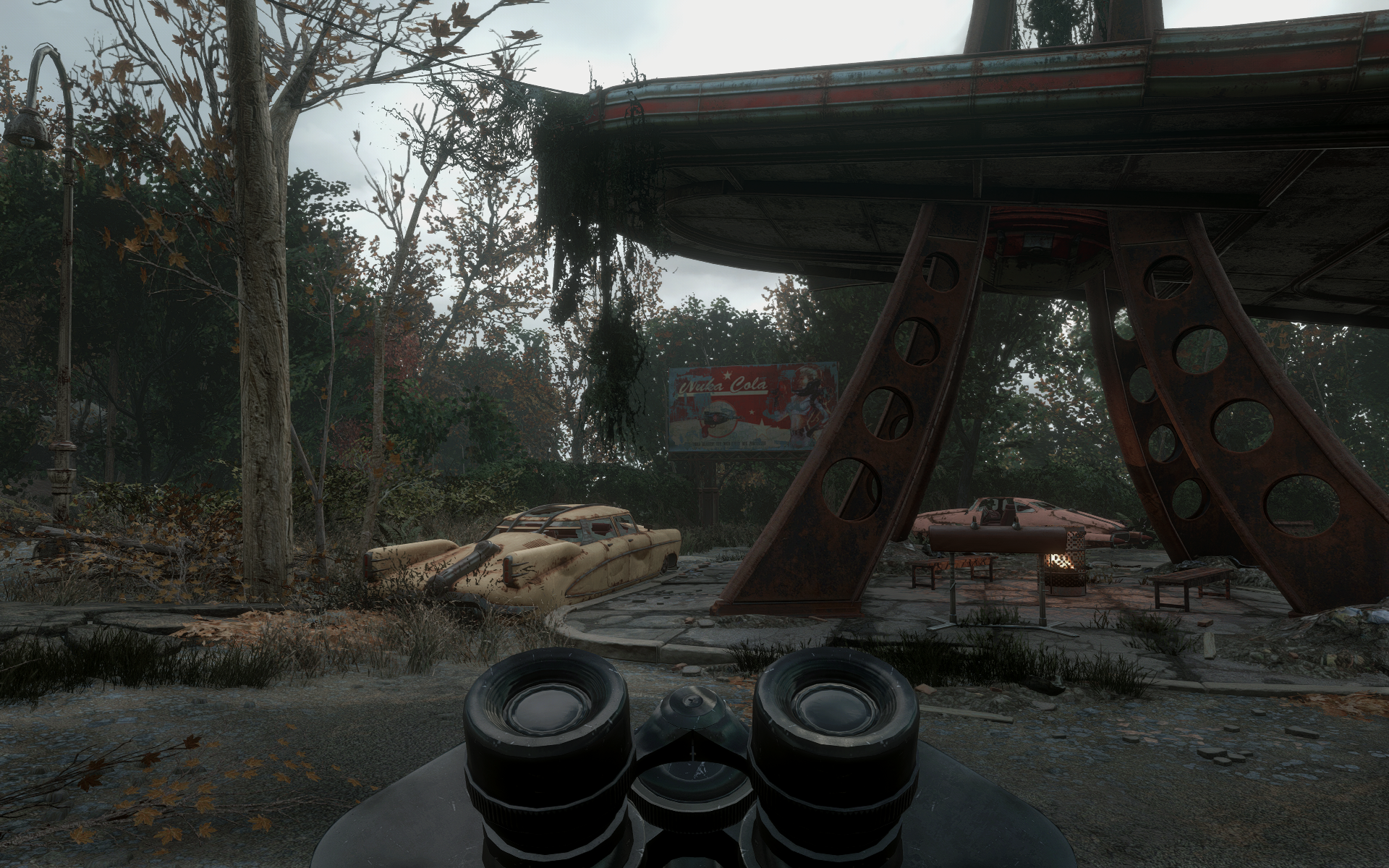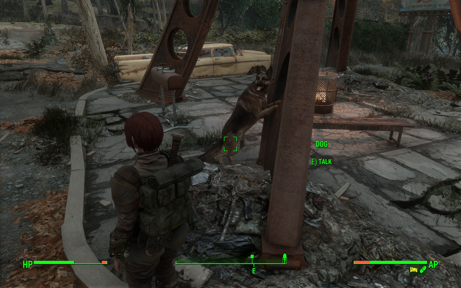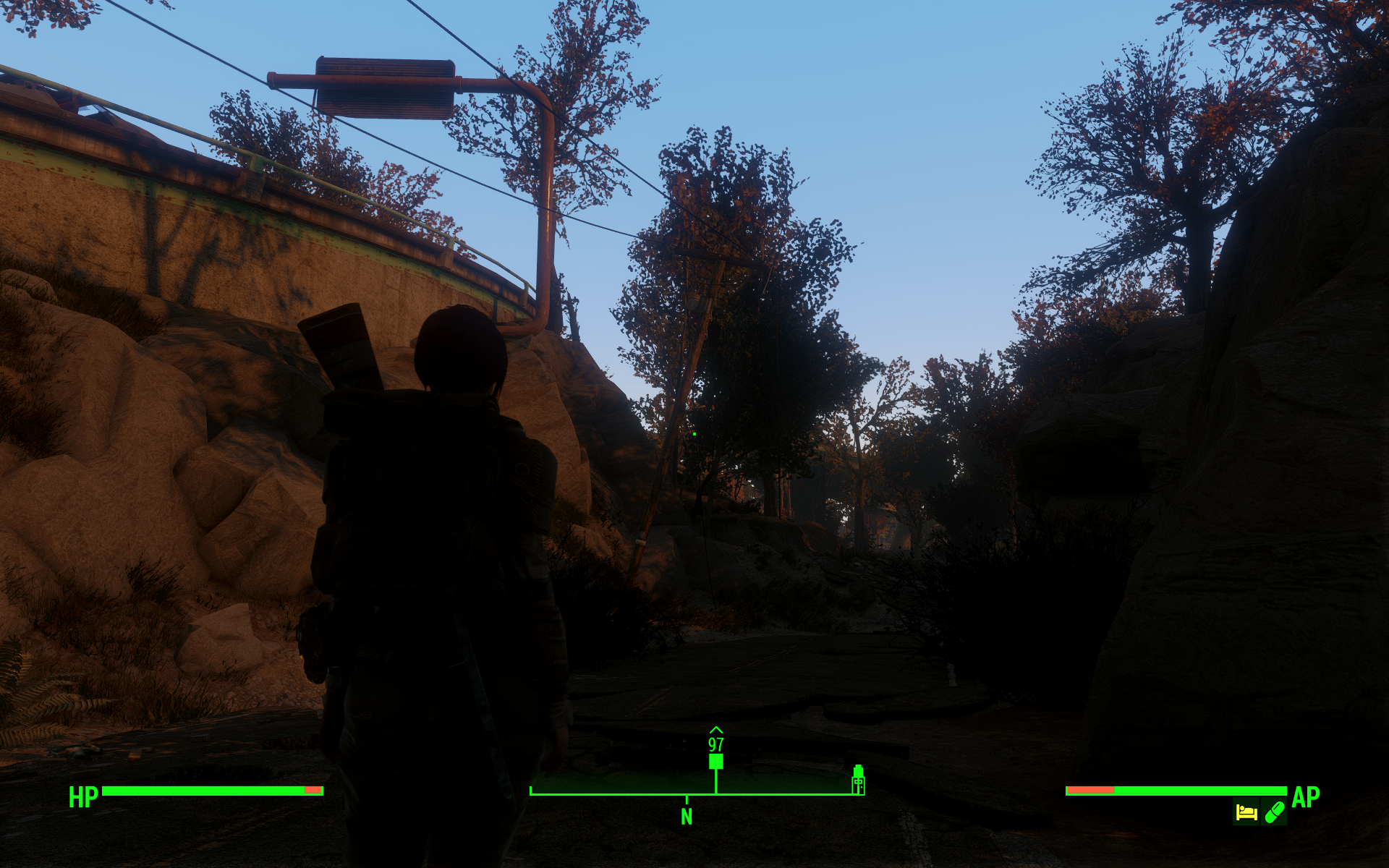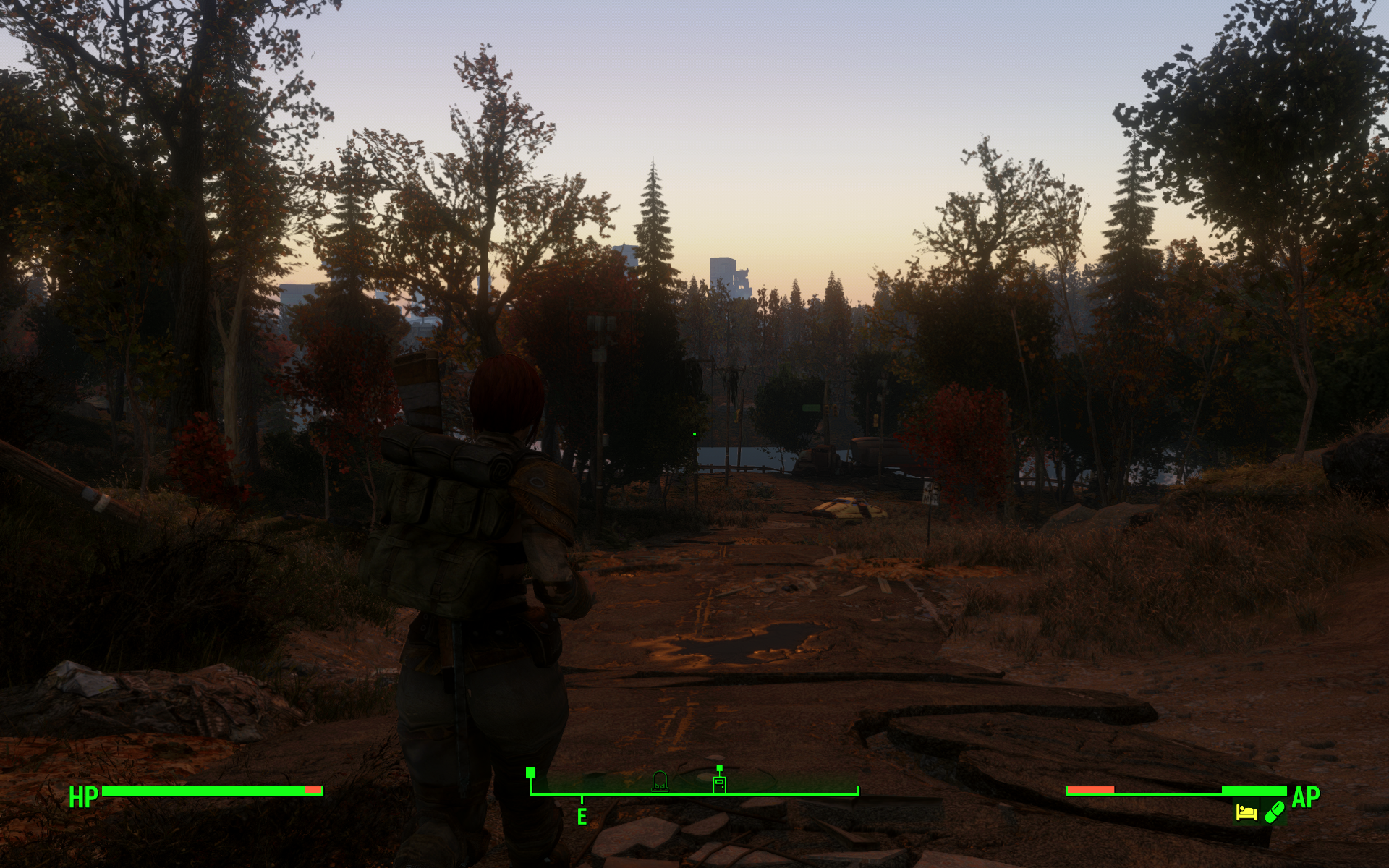 Интересно зачем моддер положил этот лук Кэллогу, но предположим. Тип вообще не понимаю смысла луков сложнее самодельного. А в далеке видно Карвегу... И да, я пойду по пути Подземки в этом ране, так что идем на первую их миссию.
