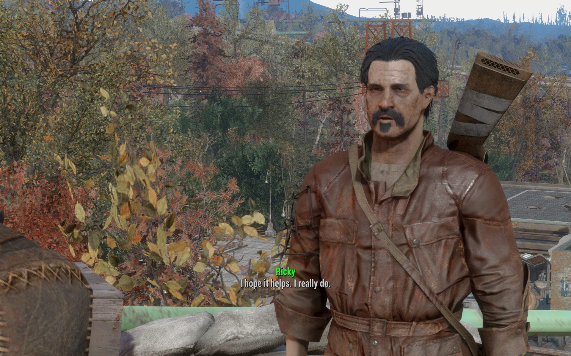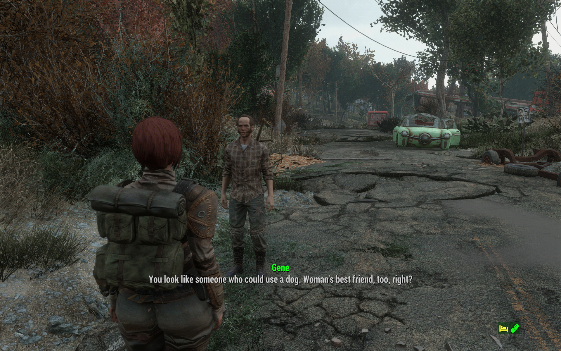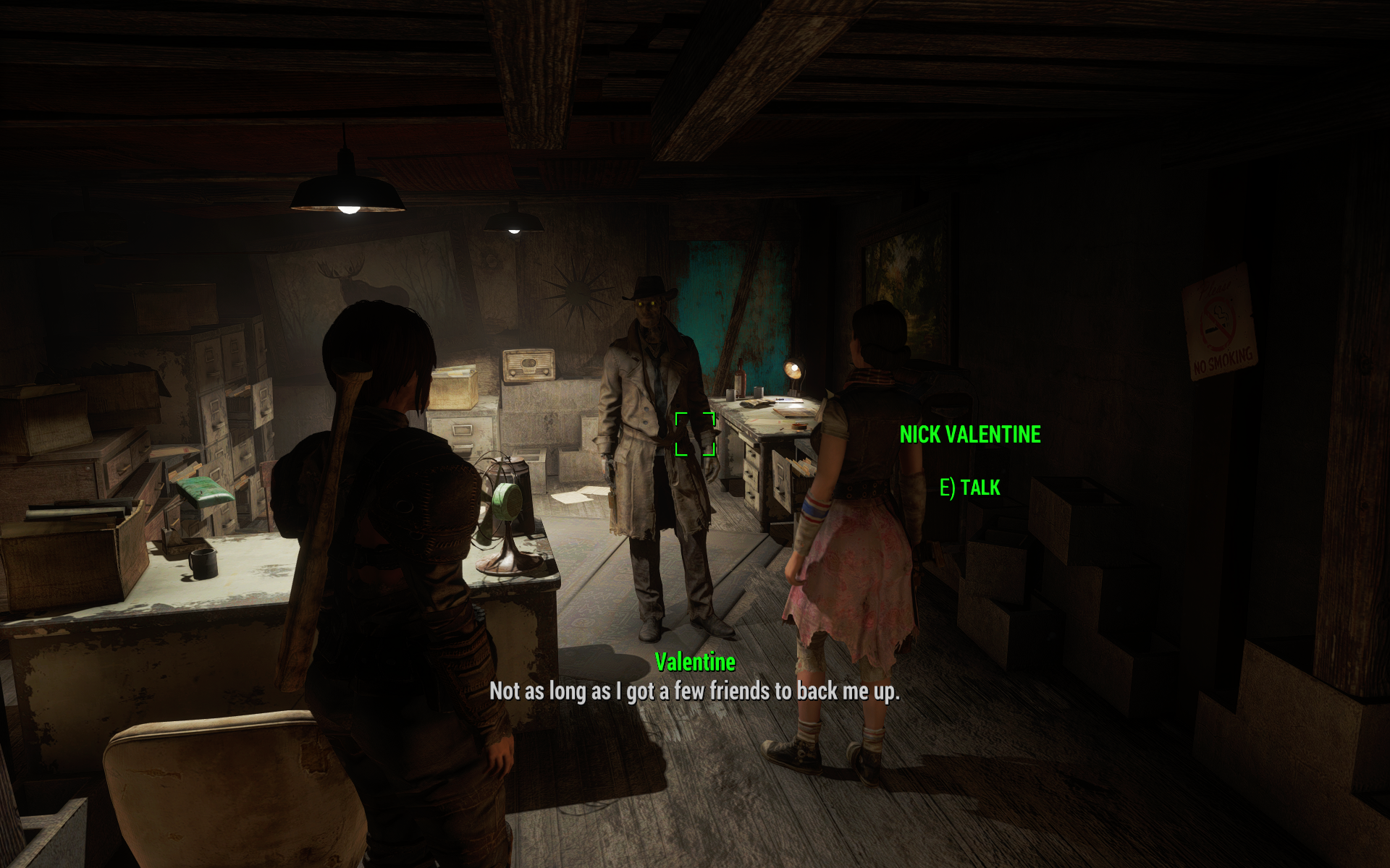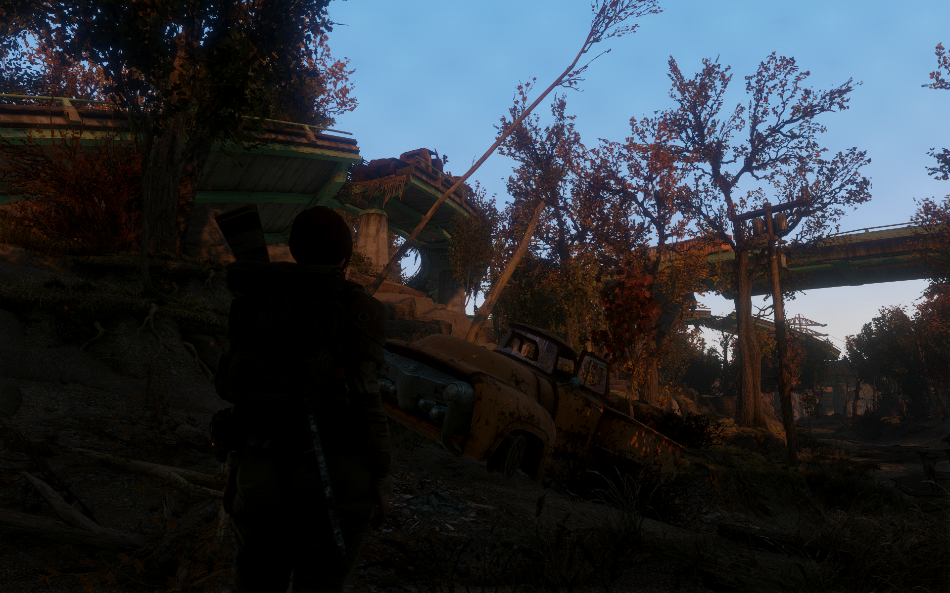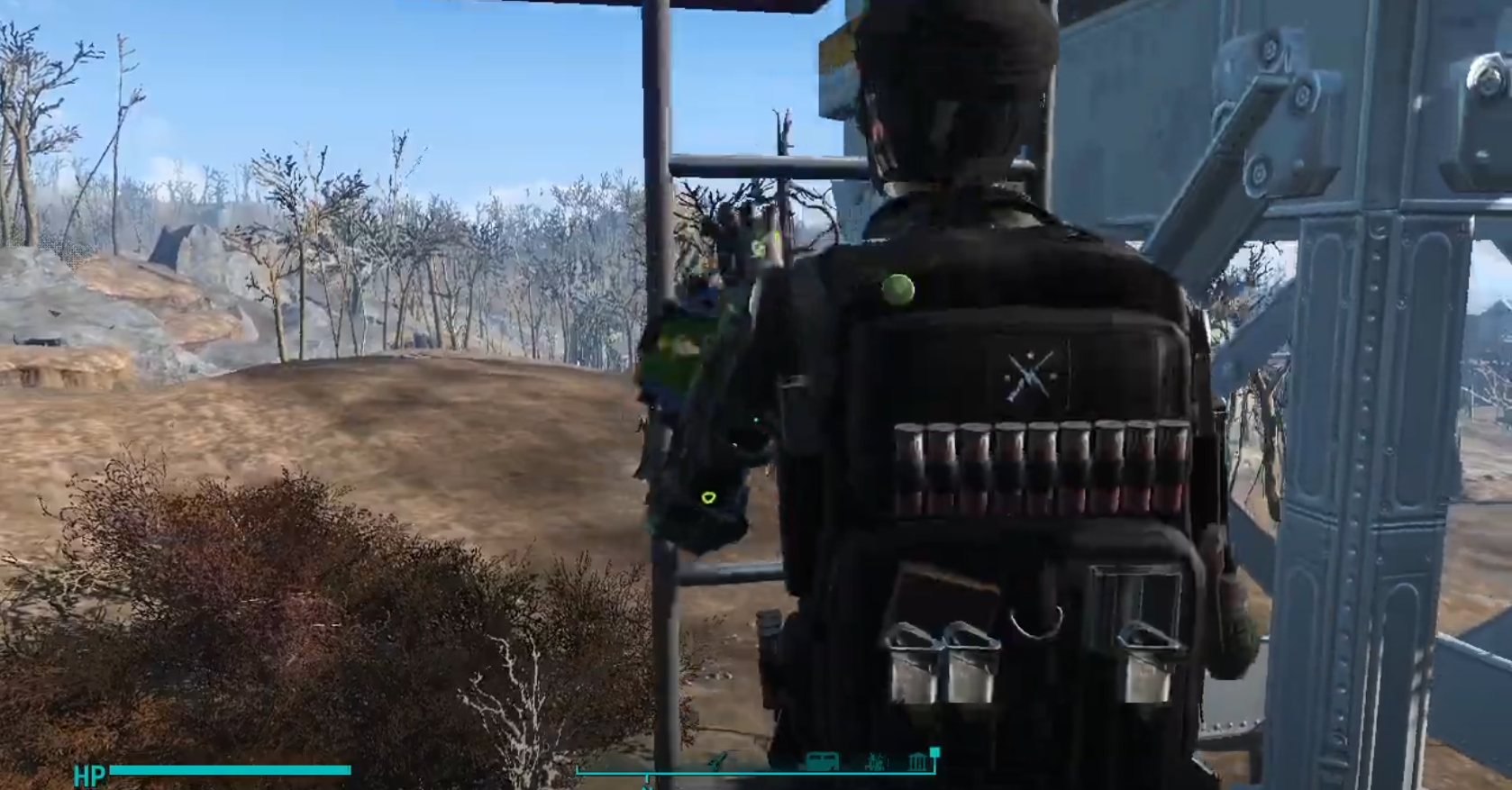 Интересно зачем моддер положил этот лук Кэллогу, но предположим. Тип вообще не понимаю смысла луков сложнее самодельного. А в далеке видно Карвегу... И да, я пойду по пути Подземки в этом ране, так что идем на первую их миссию.