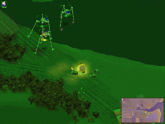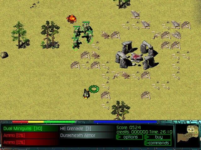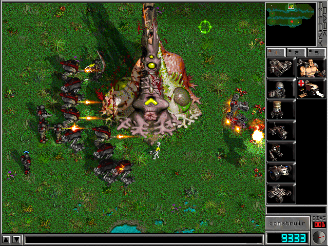 Dark Colony. Играл на своем 166 пне. РТСка с двумя пассами. Хуманы и Альены. Зеркальные почти юниты. База статично строится. Заигрывал диск до дыр. Включал скирмиш ффа максимум ботов, копил лимит и устраивал мясо. На мой взгляд оч. симпатичные спрайты, цветовая гамма, ебейше отрисованы были взрывы, ахуенный саунд.