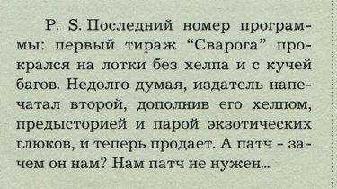 >собственно этот некий Ванька выглядит как очевидная пиратовщина Ванька- это "седьмой волк", еще скажи, не слышал про таких. Акселератор- внезапно тоже официальная локализация от какой-то сомнительной конторы Амбер. И только "Рунная Война: Маги летающей Цитадели"- это откровенная пиратка от той же "Левой корпорации", что сделала мемный говноперевод второго Фоллаута (тот самый, который с Аукцыоном про "я сам себе и небо и луна") >И анон прав - Затерянный мир (одна из частей как "Океан эльфов" Я ее знаю. Но это таки не платина и даже не категория Б. Хотя и не Micro Commandos какой-нибудь, да. >У меня из знакомых её автономно купили в начале нулевых: сестра, одноклассница (и соседка по парте) и батин друг, коммерс, любивший всякие Сим-сити. Такой себе аргумент: у меня половина класса играла в Doom2D (на каждом втором сборнике "200 лучших игр всех жанров" была), а тут анон выше ее в пример приводил. Если так придираться, в треде все относительно известное, кроме разве что дадзинси этого анона >>9817648, но даже у него на первом пике явно взяты спрайты из Duel Savior, которую я проходил. >не знаю, нахуй ты перемогаешь Собственно, я и не перемогаю, а как раз пытаюсь понять, чего вы к тому анону прикопались, хотя он тут не худший совсем.
