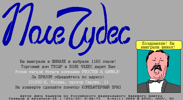 >мне 32, например Мне 40, я застал времена, когда на 286 компе (и это хорошо, если не на радиокомпьютере типа Микроши) можно было поиграть только у отца на работе, а игры добывались из интернетов в виде всяких шаровар и фривар. И даже я не уверен, что смогу запостить что-то такое, что кроме меня не узнает вообще никто, потому что даже Морской Бой, Поле Чудес или Кинг от Башурова кто-нибудь видел. Но для тебя я попробую.