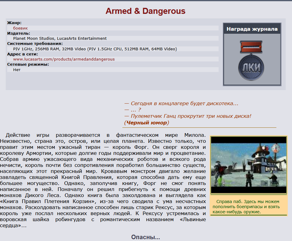 >>9818979 Я по Стране Игр 2003-2004 много помню подобной хуеты. Больше всего было стратегий и шутанов, но попадались и странные экшоны, и гоночки. Раньше был нищеебом, покупал журналы не слишком часто и уцененные старые, поэтому не замечал, но ща очень хорошо заметно - у большинства этих игр хватало денег на рекламу в 4-5 номерах и пару микростатей, а потом они исчезали. Проекты а-ля современная странная индюшатина. Причем в этих играх часто было что-нибудь круто придуманное, но кроме этой идеи не было нихуя. Так и вижу, как микроконтора на 5-10 челиков на коленке клепает игру в гараже ради пары фич, которые им самим кажутся невъебенными.