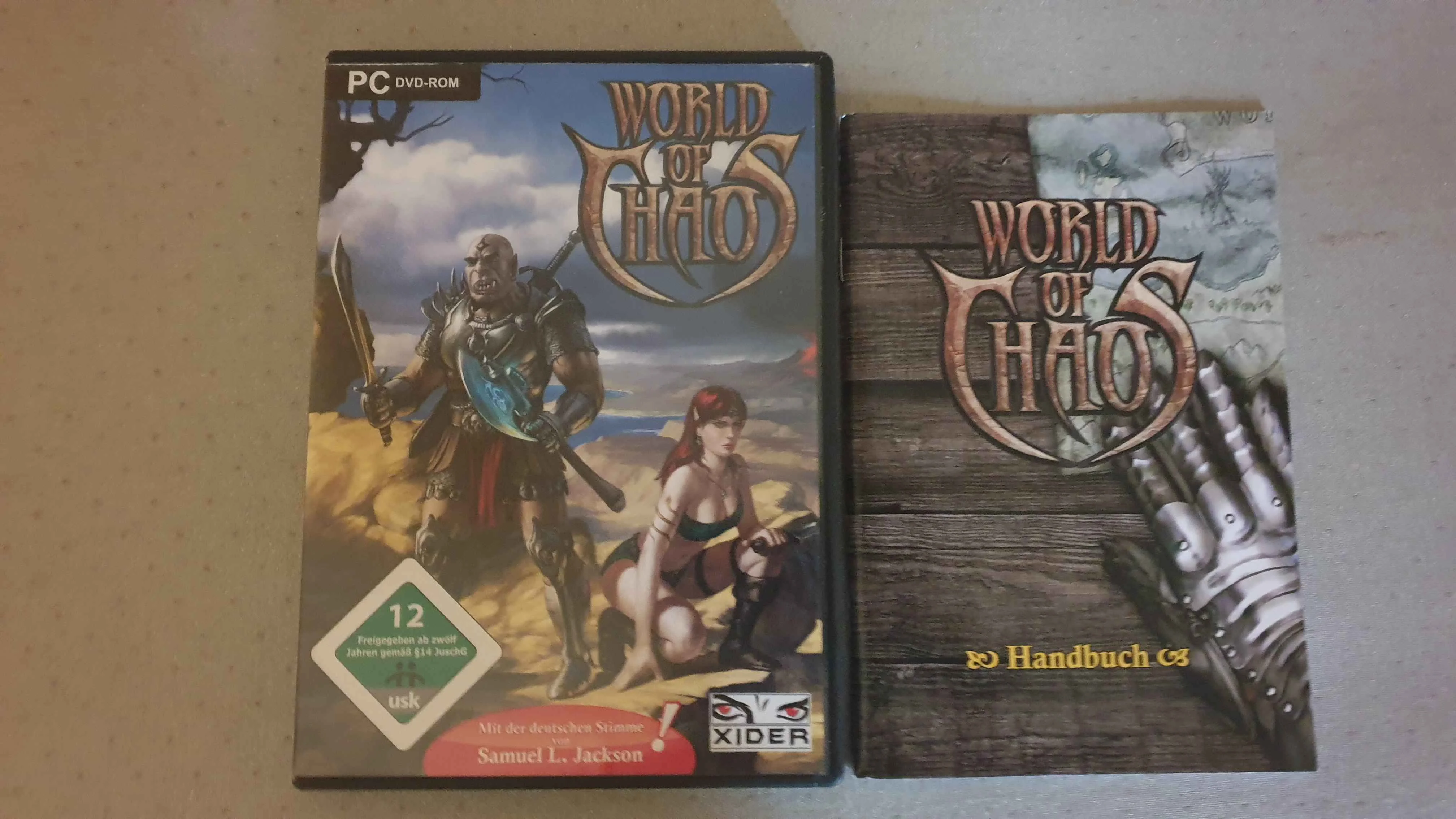 Впрочем, я сам игру обнаружил на каком-то ДВД-сборнике... а вот и он, на полке лежит, называется "Коллекция RPG часть 2" от Diggers. Сам доиграл только до леса, там на меня напали волки, один зашел прямо в дерево и там застрял- на этом я и дропнул. Но если правильно помню, те, кто проходил до конца, говорили, что игра на самом деле называется WORD of Chaos- слово, а не мир. Причем на сайте Акелы скрины именно с правильной подписью были, а на дисках уже World было напечатано- такие дела.