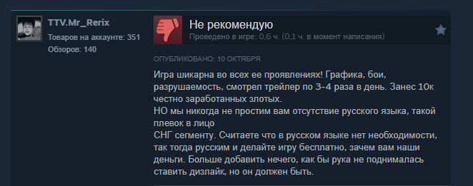 >>9844199 >игра недоступна в вашем регионе >похуй что недоступна, я все равно через протыков и еблю все оформлю и куплю, занесу барену и поменяю настройки в биосе для него >ряяя где язык уроды, плевок в лицо