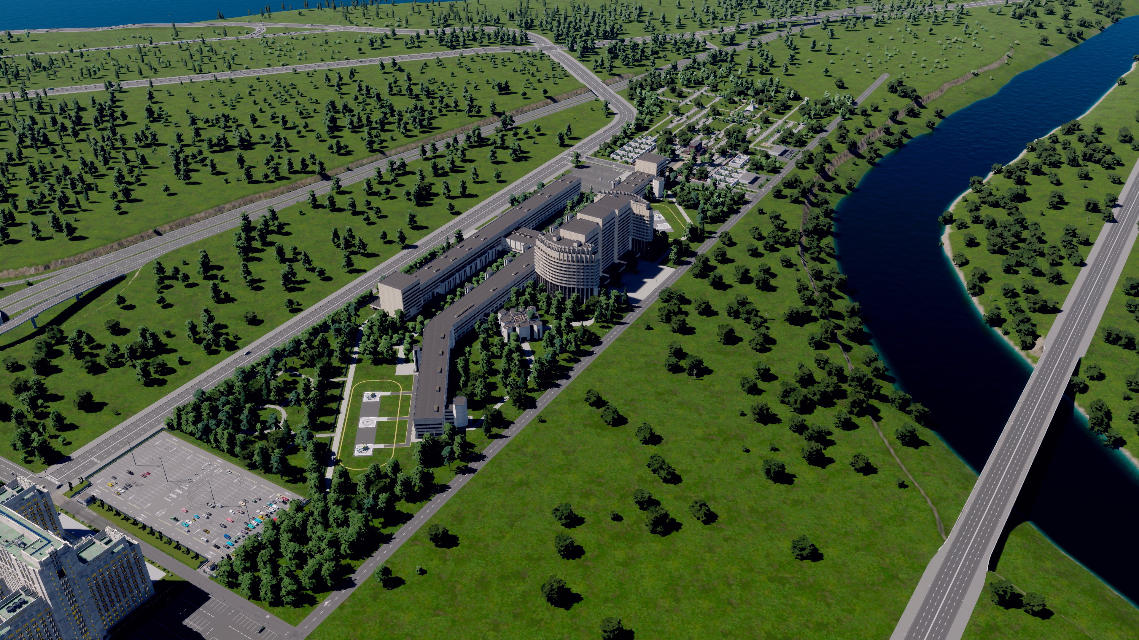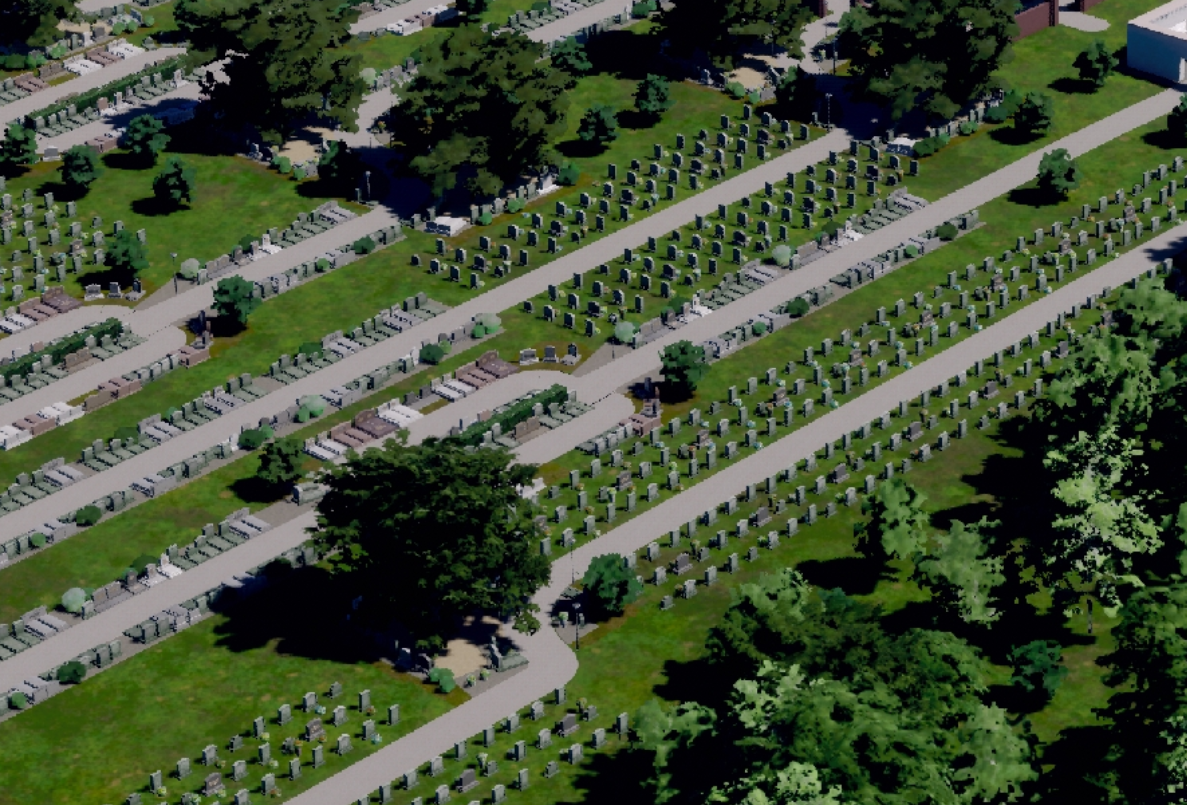 Построил огромную эпидемиологическую больницу и рядом поставил модульное кладбище. Они так хорошо встали друг к другу, что я только потом понял, что строить кладбище рядом с больницей, не очень хорошая идея, лол.