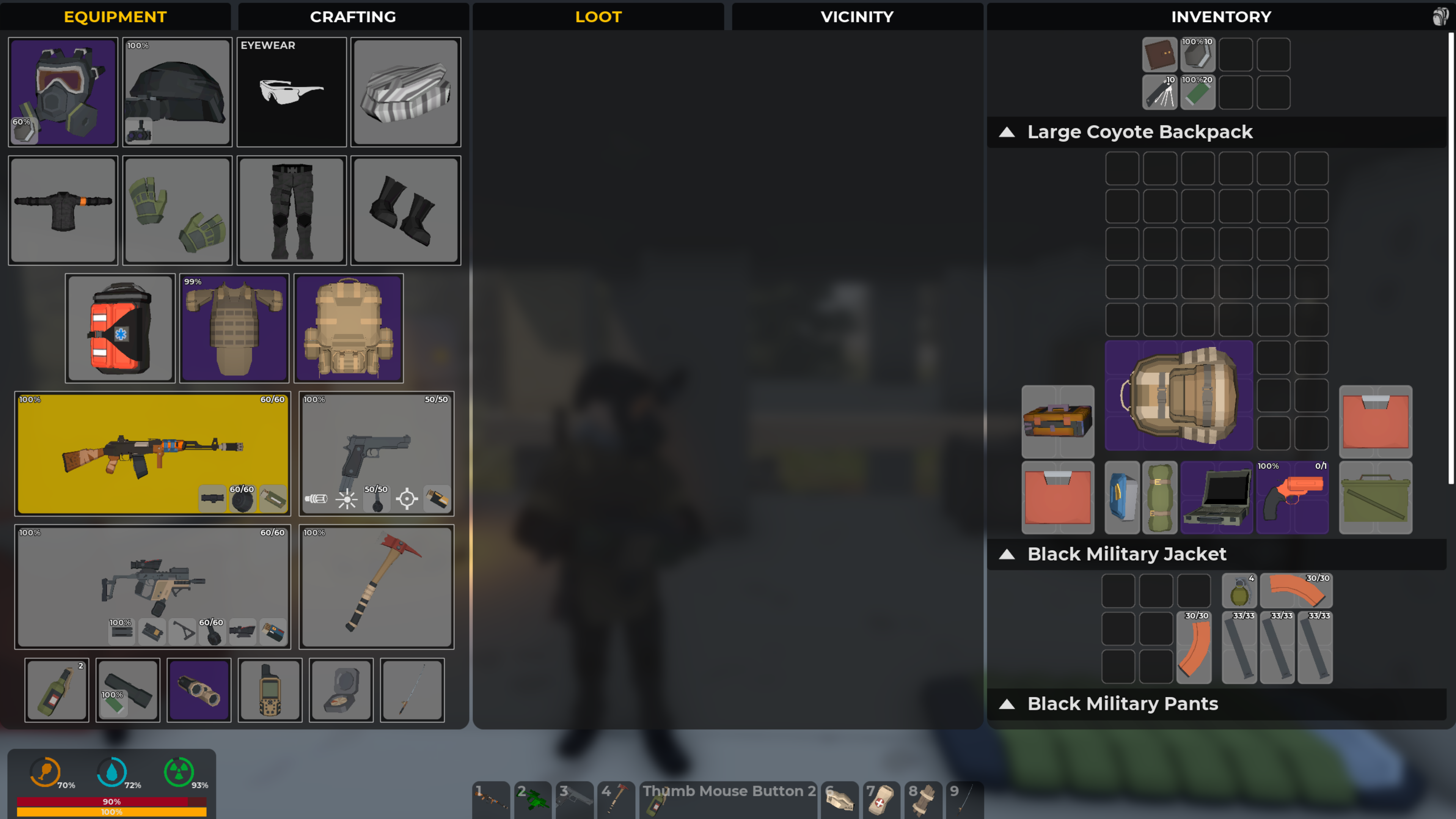 >>9845378 Инвентарь вот так выглядит. Ещё прикол в том, что тут есть множество разных контейнеров, и можно рюкзак в рюкзак закинуть, например, а в него - то, что не помещается в основную сумку. Набиваешь мешок контейнерами и сортируешь так лут.