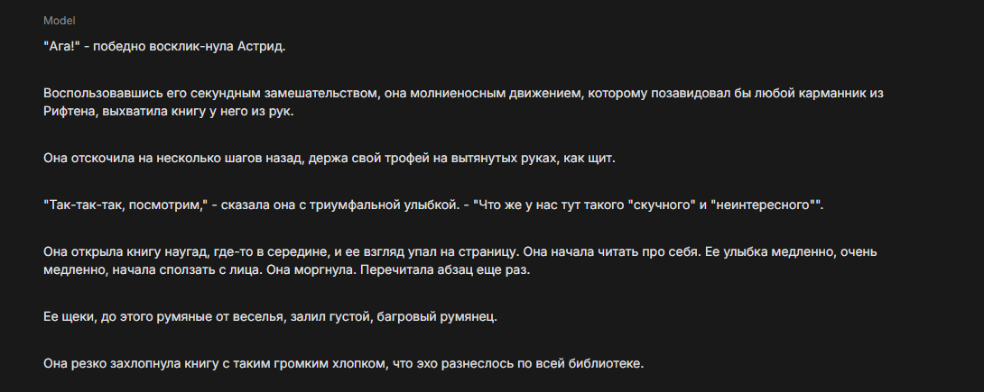 >>9839862 ИИ не собеседник и не художник. Он дает ответы из слов, которые наиболее часто встречаются вместе в доступных базах. То же самое с рисунками. Это как самому с собой разговаривать в лучшем случае. Или челом состоящим из одни только стереотипов. Робокомпаньон не должен использовать нейрокал или "обучаться" на основе сопутствующих друг другу слов, которых не понимает. Это не личность. Даже простыми алгоритмами можно создать более человечную личность, у которой буду особенности, заданные разработчиком. Поэтому первых робокомпаньонов будут настраивать реальные люди на их личное усмотрение, а не нейрокаловое "обучение". Никто не захочет тратить кучу бабла на общечеловека, состоящего из популярных сочетаний слов.
