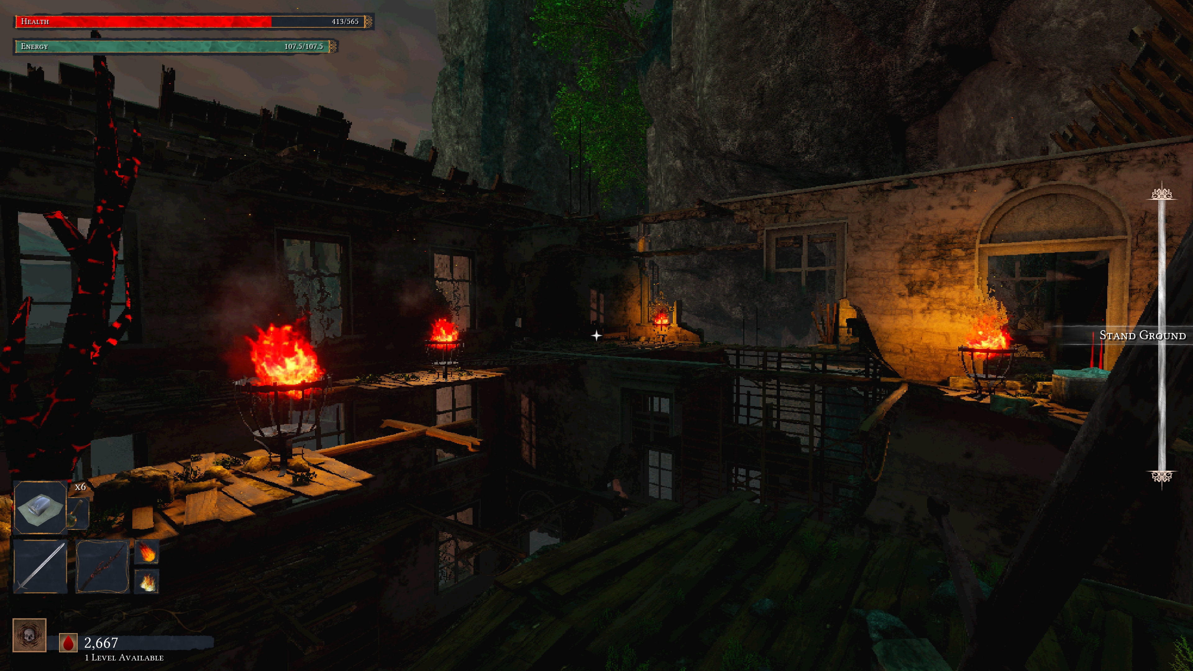 Костры как в душах. Но противников возрождают только после смерти, можно ходить к кострам прокачаться и отхилиться без поднятия врагов, что прикольно.