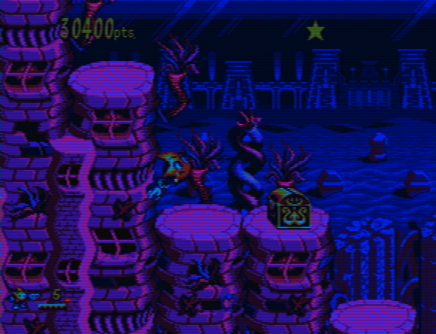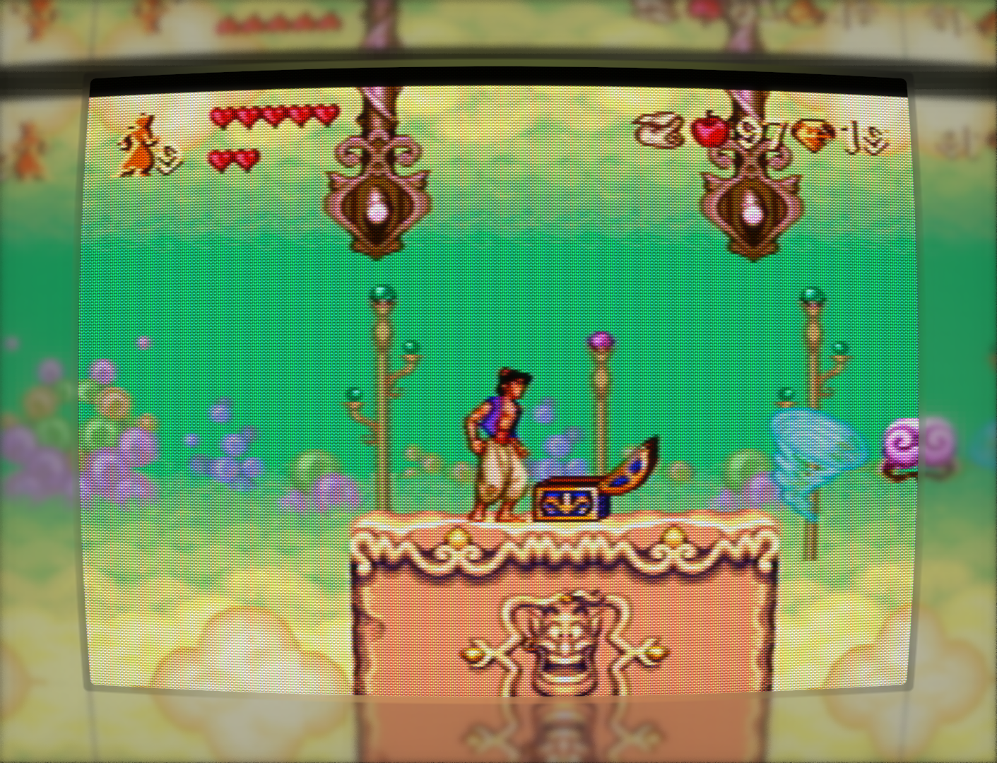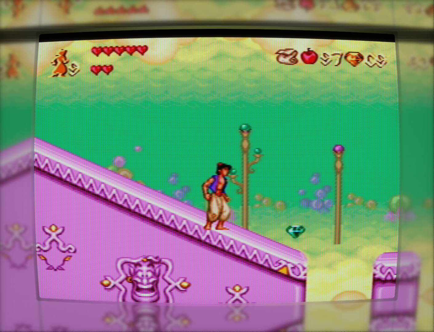 Я врубаю лайтовый шейдер просто чтобы немного сгладить пиксели и придать объема. 3 и 4 пики кажутся ебейшим говнищем (Мегабезел и crt-royale соответственно).