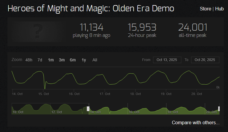 И еще раз говорю, что эти 26к онлайна в день релиза она получила только по причине надписи герои меча и магии на обложке, без этой надписи там было бы 500 человек.