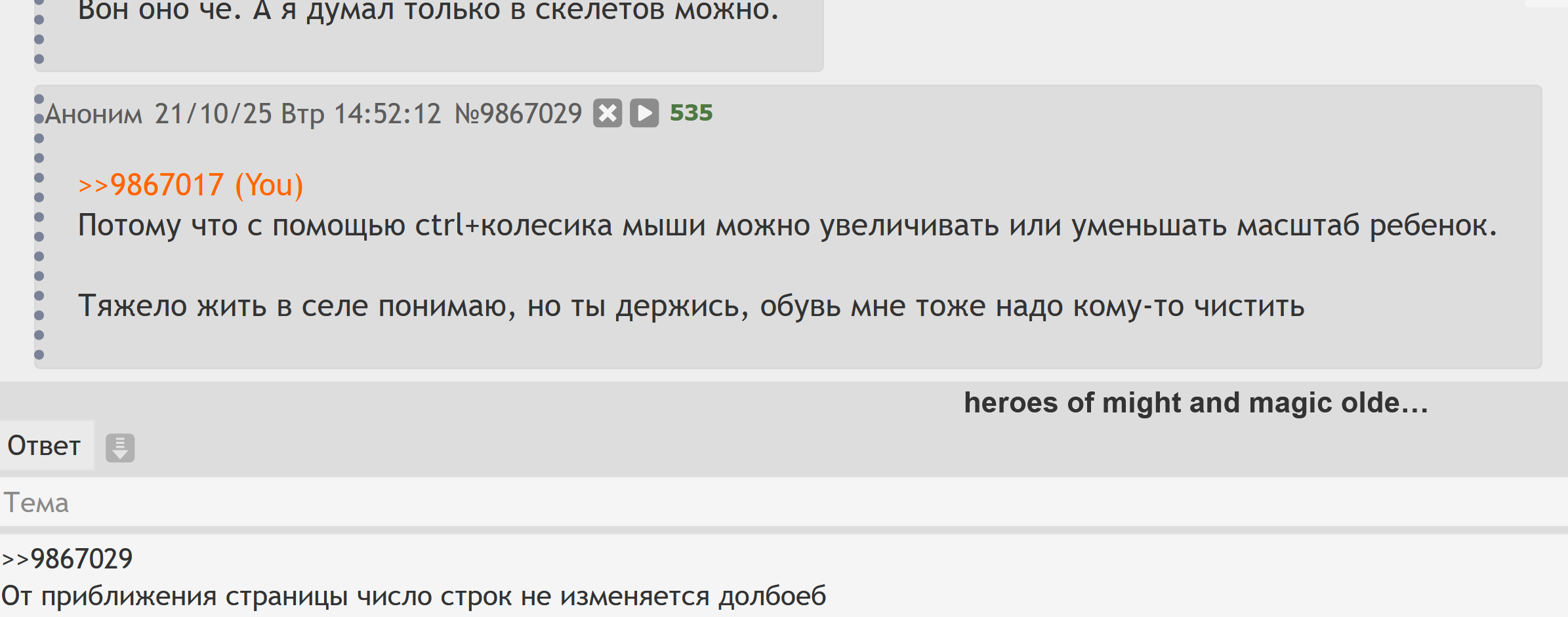 >>9866876 >Типичный диалог с колхозником 9 классов образования, который за неимением, что ответить по теме диалога где его обоссали просто пытается прыгнуть на другую тему с видом, что он сказал что-то умное