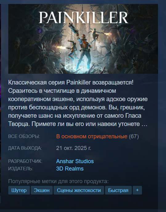 Читаем: >Классическая серия Painkiller возвращается! Сразитесь в чистилище в динамичном кооперативном экшене, используя адское оружие против беспощадных орд демонов