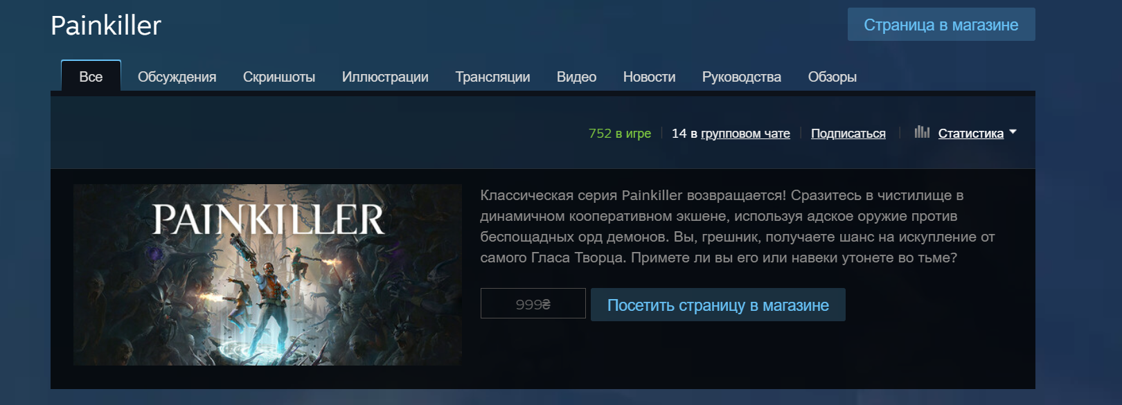 А всё, вижу, называется PAINKILLER. Обожаю когда новые продукты называют так же, как уже вышедшие, и потом из за таких талантливых и креативных людей появляются разные Prey (2017), Return to Castle Wolfenstein (2008) и т.д. Ну отзывы не очень.