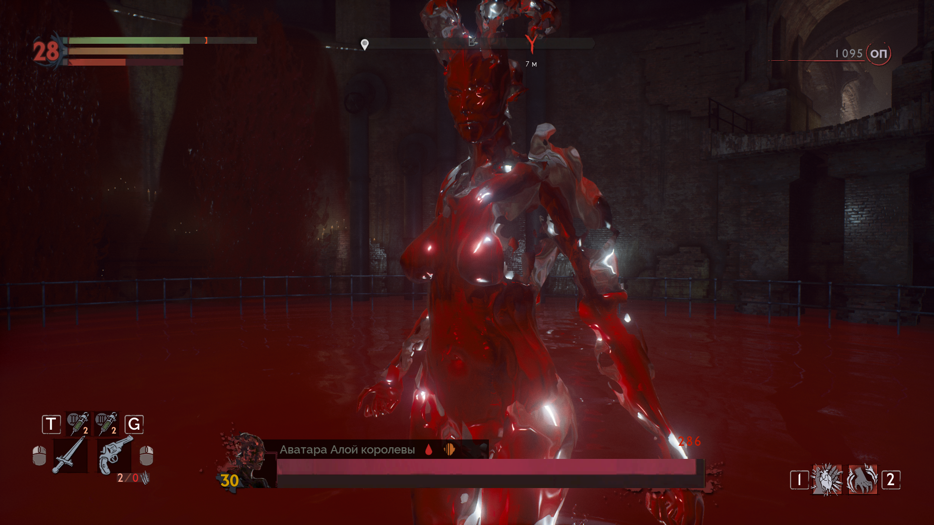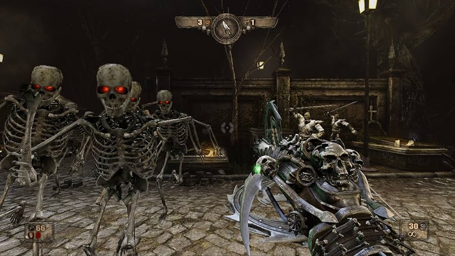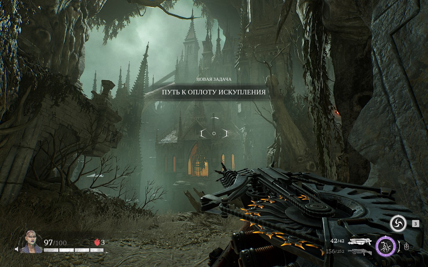 На харде сложно пиздец, смог пройти босса только пожирая хилки, что как-то не круто. Поставил нормал. Да, соулсы нас испортили, мы забыли, что менеджмент врагов — это не когда ты из лука отстреливаешь по одиночке скелетов, а когда посреди боя на тебя нападают несколько соперников с мечами разной силы, а в это время в тебя либо стреляют из автомата, либо из РПГ. Ой бля-я.