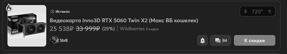 >>9869734 >наскребла на свою нищую видюху 25к и понесла это все в ДНС "шоб сделали КАЧЕСТВЕННА", ты? Нет, я все покупаю по дико выгодным ценам на вторичке. Видюху получилось выгодно взять через знакомого через юр лицо без ндс. >Все покупают на ВБ щас, зайди в /hw в тред видюх, например, ебанатик несведущий Только утром туда писал, кстати. Я шарю в рыночке железе.