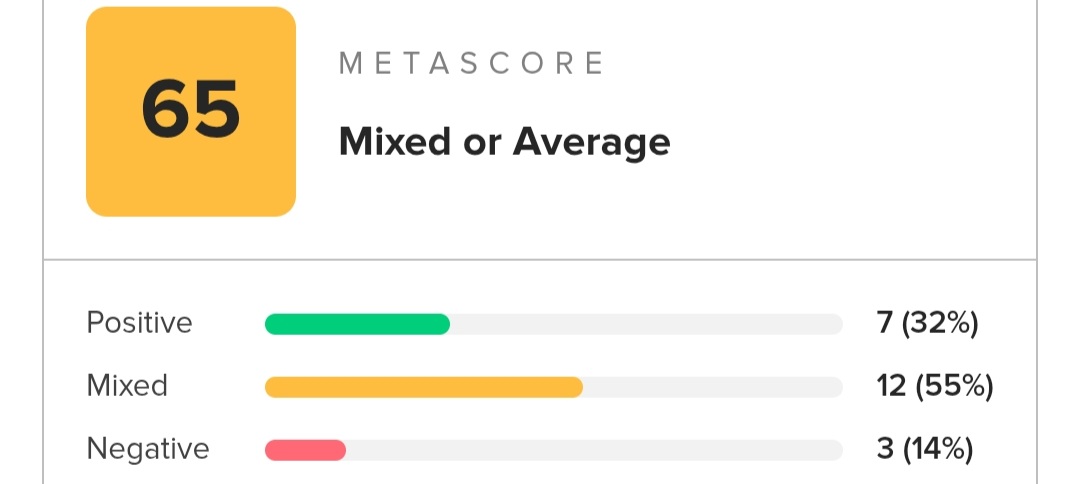 >>9870161 65% думаю это честные оценки обычно когда платят, то там всякий кал за 85 залетая, а мы потом сидим ржом с этой хуеты, как у калгарда и калфилда высокие оценки игрожура, а от игроков 40%