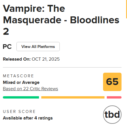 >>9869505 А чего думать? Игру хуесосят за баги и тормоза как обычно и линейный геймплей. Но первые вампиры тоже были гриндилкой кишок с мобами, рпг калтента там было на 2 часа игры.