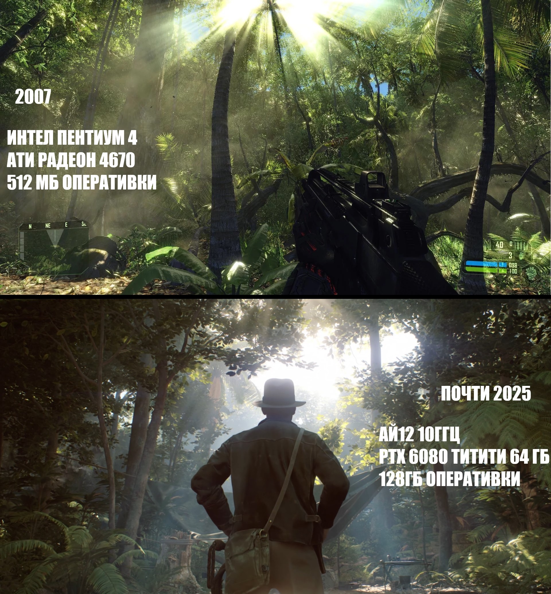 Или вот этот мем про технологичное освещение УЕ5, требующее железа. Да кому не похуй на это технологичное освещение, которое требует 32ГБ видеопамяти и статтерит, когда запеченные в текстуры свет и тень:
