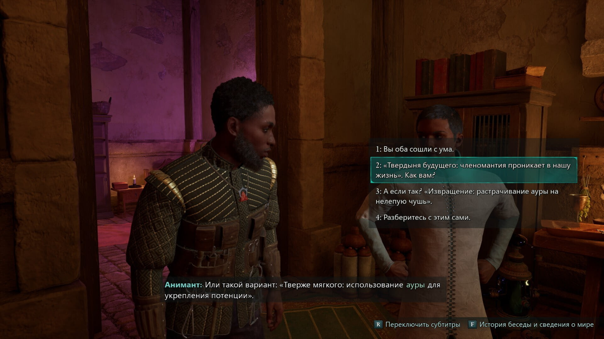 Было бы неплохо, если бы к переключению вариантов ответа на W и S добавили ещё выбор на Е, но это же так не очевидно. Помню в ремейке калбливиона такая же хуйня где-то была, вроде когда стрелы лутаешь, там менюшка выбор количества, и подтверждение на Е на работало, надо было каждый раз либо отпускать мышку и правой рукой нажимать энтер, либо левую руку убирать с wasd и тянутся к энтеру. Лично у меня это в голове не укладывается, как в студии не нашлось ни одного человека, который бы не подумал о комфорте игрока, который не подумал, блять а не хуйню ли мы делаем?