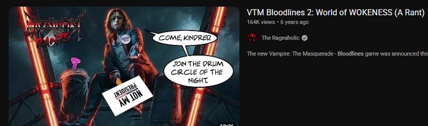 Я просто напоминаю, что людей которые создали мир тьмы, уже давно нет, студию и их собственность пустили по руками. Так что последние так лет 15 вселенную пишут левые люди.