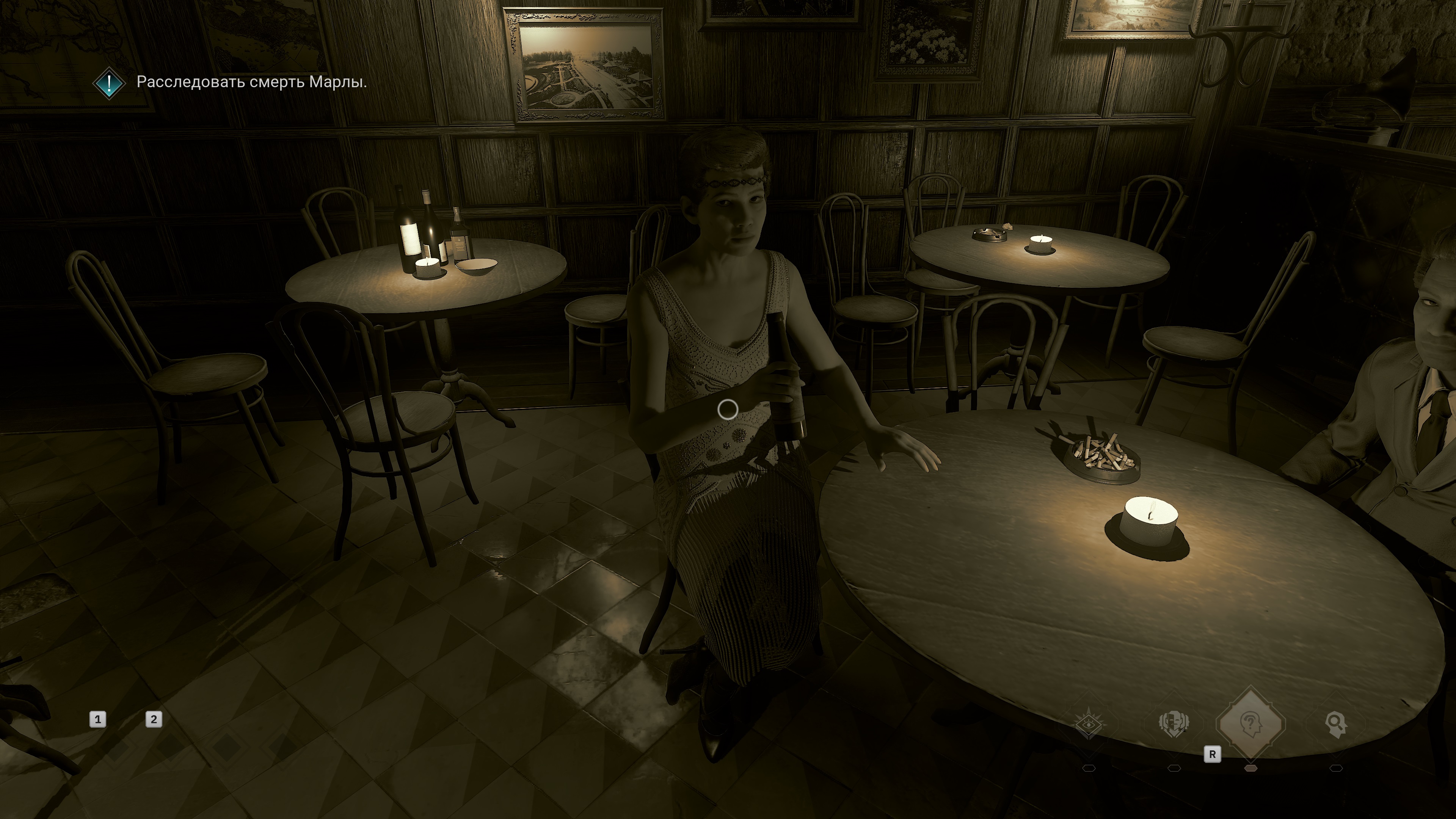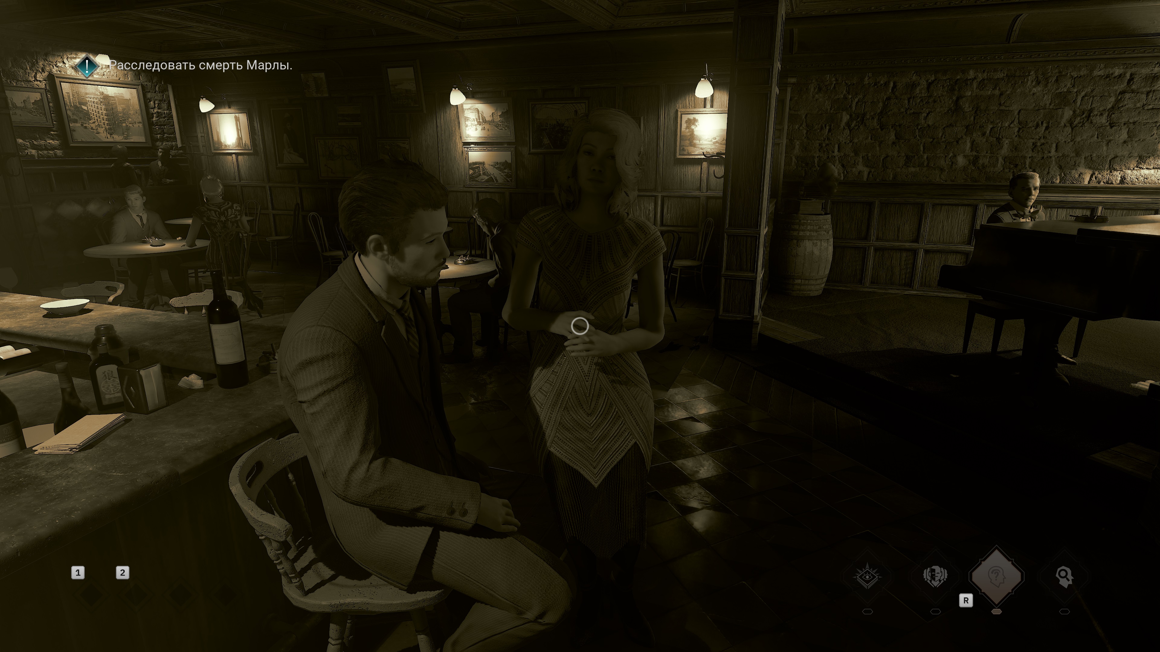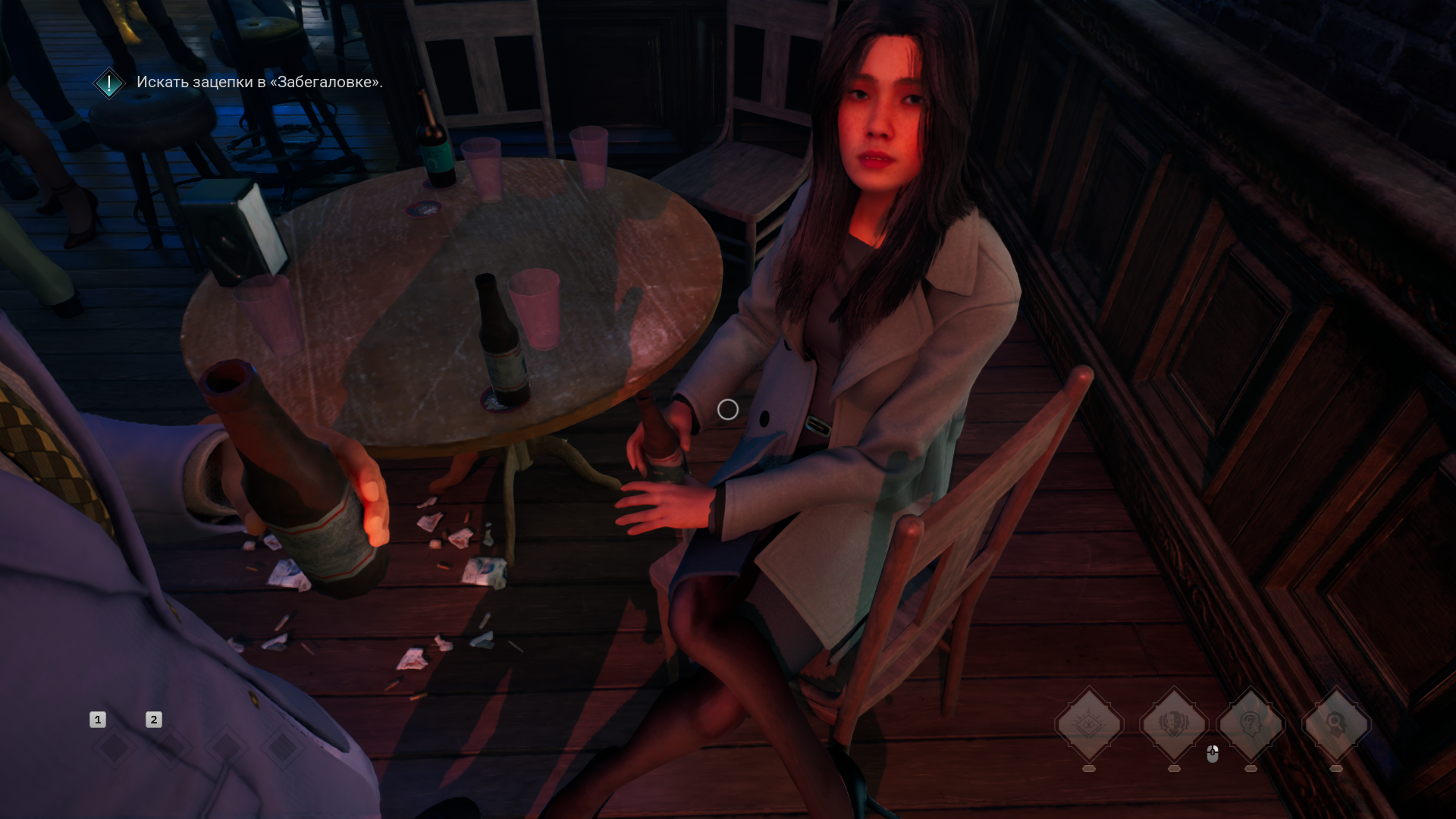 Сам город визуально хорош, атмосфера на месте, но предельно пустой. Он вообще ничем не наполнен, в нем нечем заниматься. Есть 5 основных точек, где сидят главные нпс, куда ты будешь возвращаться снова и снова - и за основного персонажа в реальном времени и в воспоминаниях за детектива. Тотальный реюз - выжимают все возможное из этих нескольких локаций, потому что помимо них здесь нихуя нет. Вот буквально 0 зданий куда можно зайти, 0 опциональных персонажей или случайных встреч. Тупо 5 зданий и улицы, наполненные болвачиками. Пока бежишь от одного задания к другому ты не можешь ничего встретить. Даже любители юбивысеров останутся недовольны, так как здесь нечего чистить вилкой. Вне квестов здесь пачка врагов на одной из крыш и еще одна где-то в переулке, помимо этого мир абсолютно пуст. Я не знаю зачем этой игре опенворлд. Разрабы словно поняли, что заставлять перемещаться по этим улицам на обычной скорости будет слишком бесчеловечно, поэтому второму персонажу дали пассивку, ускоряющую время в 5 раз. За детектива ты ходишь от точке А к точке Б и слушаешь диалоги. Есть какая-то невнятная механика манипуляции собеседника путем применения скиллов, но они, во-первых, всегда обязательны, а не являются одним из вариантов прохождения, во-вторых, мы ничего не качаем и не выбираем, а всего лишь тыкаем то, что просит игра. Если выбрал неправильный диалог - похуй, кастуешь по новой, последствий никаких.
