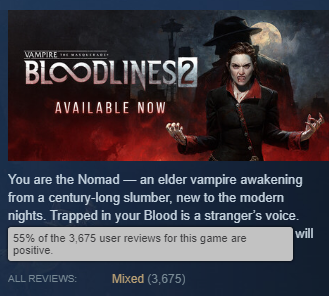Есть инфа от знающего игродела, что в Vampire: The Masquerade - Bloodlines 2 скоро ожидаются реальные изменения. После того, как стабилизируют производительность патчами и уничтожат все баги. Тогда напишут новые квесты и сформируют новую сюжетную линию. Интерес к игре поднимут и будут держать, утки ничего не смогут сделать. Сейчас главное не бухтеть.