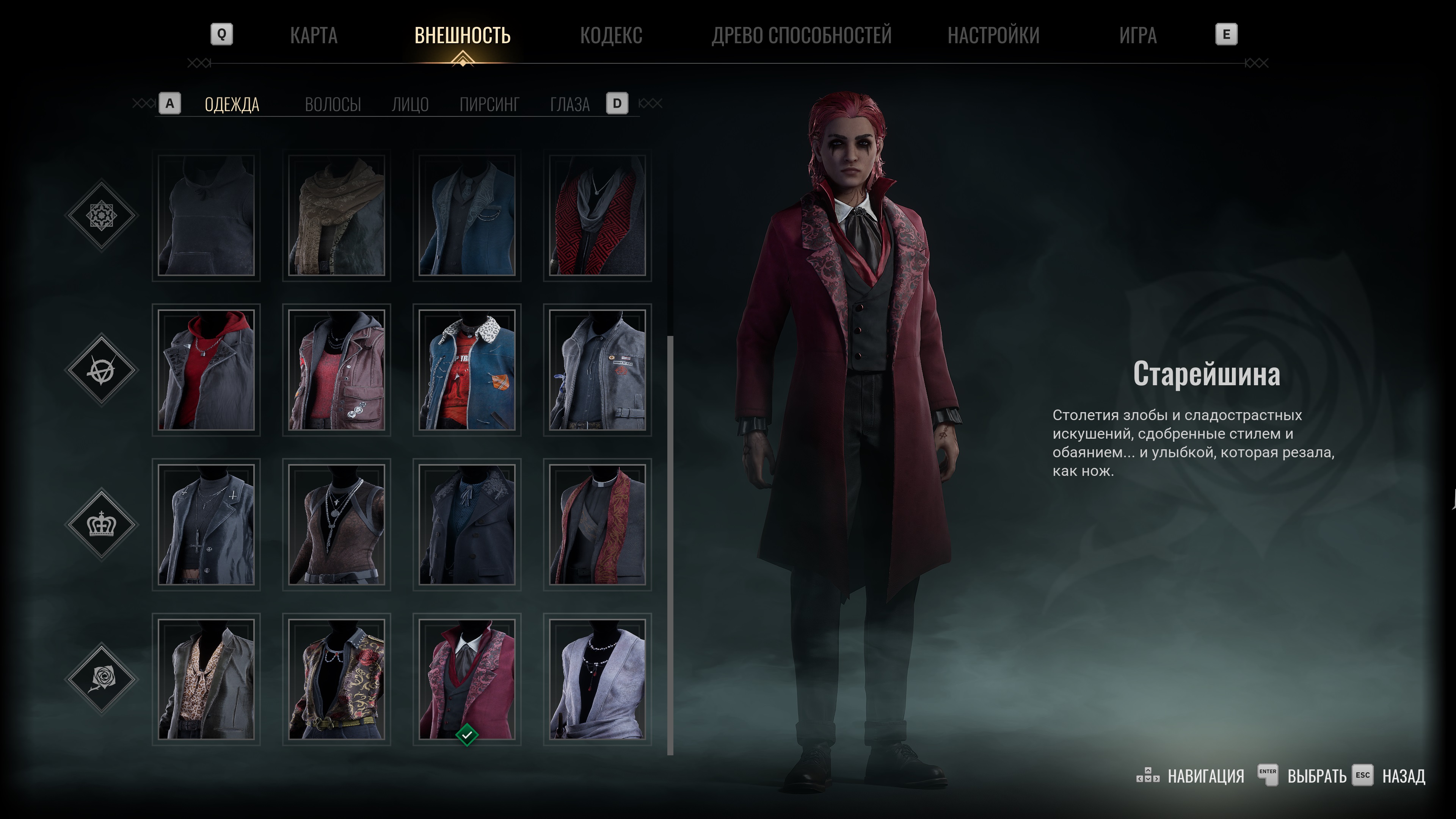 Всегда было интересно, почему не могут дать игроку весь шмот с неписей? Я бы с удовольствием бегал в нуарном шмоте из флешбеков со всеми этими прилизанными причёсками, но этих костюмов нет. Хотя как раз по лору наш протагонист заснул в 20-х.
