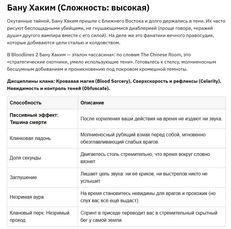 После небольшого вступления дают выбрать класс, при этом все описанное нацелено исключительно на боевку, так что ты сразу же понимаешь, что перед тобой не РПГ. Причем классы отличаются лишь ПАССИВКОЙ и одеждой, то есть они по факту не отличаются даже геймплейно. Довольно приятный мувмент, перемещаться по городу прикольно, но это из-за анимаций и возможностей персонажа, так как "подойти к стене и нажать одну кнопку" можно назвать геймплеем лишь с натяжкой. Учитывая количество крыш и вертикального перемещения, удивительно, что на этих самых крышах нихуя нету - ни интересных мест, ни квестов, ни нпс (сбор говняка не считаю за активность). А помимо этого здесь унылейшая мили боевка и говностелс. Но ты не можешь пройти что-либо стелсом - в конце будет закрытая дверь и надпись "сперва убей всех врагов". То есть стелс здесь существует лишь для того, чтобы бесшумно выпиливать врагов, а не как альтернативный вариант прохождения. Почему? Хуй знает. Из того что стабильно раздражало - нет неуязвимости во время добивания, меня пару раз убивали с 100% хп до 0% пока я высасывал кровь из врага (чо за долбоеб решил запихнуть это в таланты?) и забагованные промпты этих самых добиваний - они то появляются, то не появляются, то появляются и сразу же пропадают, а порой их просто нету, но все равно можно начать добивание, если спамить F, несмотря на их отсутствие.