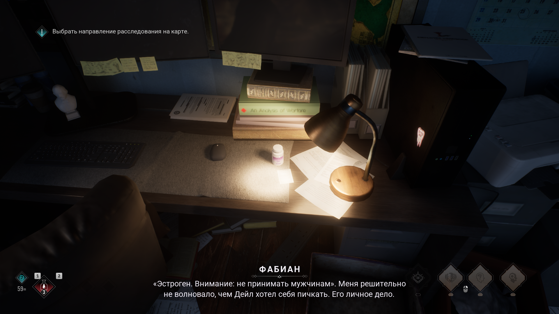 Писанина ожидаемо соевая. Помню в первой части у эстрогена было описание "ни в коем случае не применять мужчинам" или чет такое. Здесь же, когда во время расследования находишь эстроген в комнате одного из персонажей, главный герой высирает что-то типа "ну, это его дело как поступать со своим телом". Улавливаете месседж? Радио пытается быть забавным, как в первой части, но получается какая-то натужная хуйня (прослушал все записи, если что). Я вообще не понимаю, почему высмеивание интернет культуры нулевых было довольно юморным и нисколько не устарело, а высмеивание современного интернета сводится к "ХЕШТЕГ ХУЙНЯНЕЙМ". ЫЫЫЫ бля смищно. Во время диалогов вылезают реакции собеседников, но в них нет никакого смысла, т.к. они не влияют вообще ни на что. Здесь в принципе нельзя выбрать вариант, который хоть как-то поменяет прохождение. Более того, можно выбрать сперва хороший вариант, а затем хуевый - они не взаимоисключающие. Ну а выглядит это примерно так -Здарова, бро. (чувак доволен) -Здарова, ДАЛБАЕБ. (чувак злой) Последующий диалог все равно одинаковый.