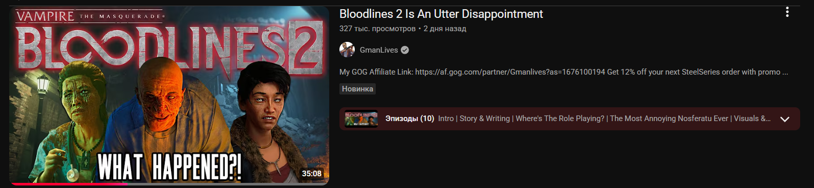Первые вампиры в моем топ3 РПГ всех времен, рядом с Нью Вегасом и первым Дэус Эксом. А этот высер прошел и забыл. Про него буквально никто не вспомнит уже через неделю.