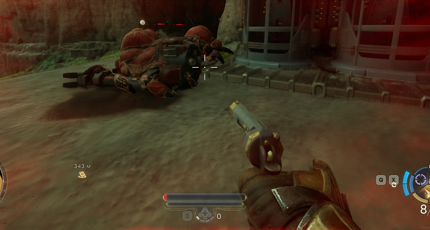 Дизайн ужасный, все какое-то нелепое, цветастое. Из-за этого, я в некоторых случаях не понимаю что на экране происходит. Враги в красной броне, стоят в красной траве и стреляют желтыми сгустками. Причём врагов много и стреляют они со всех сторон. Где ты в безопасности, а где нет, откуда стреляют, вообще нихуя не понятно.
