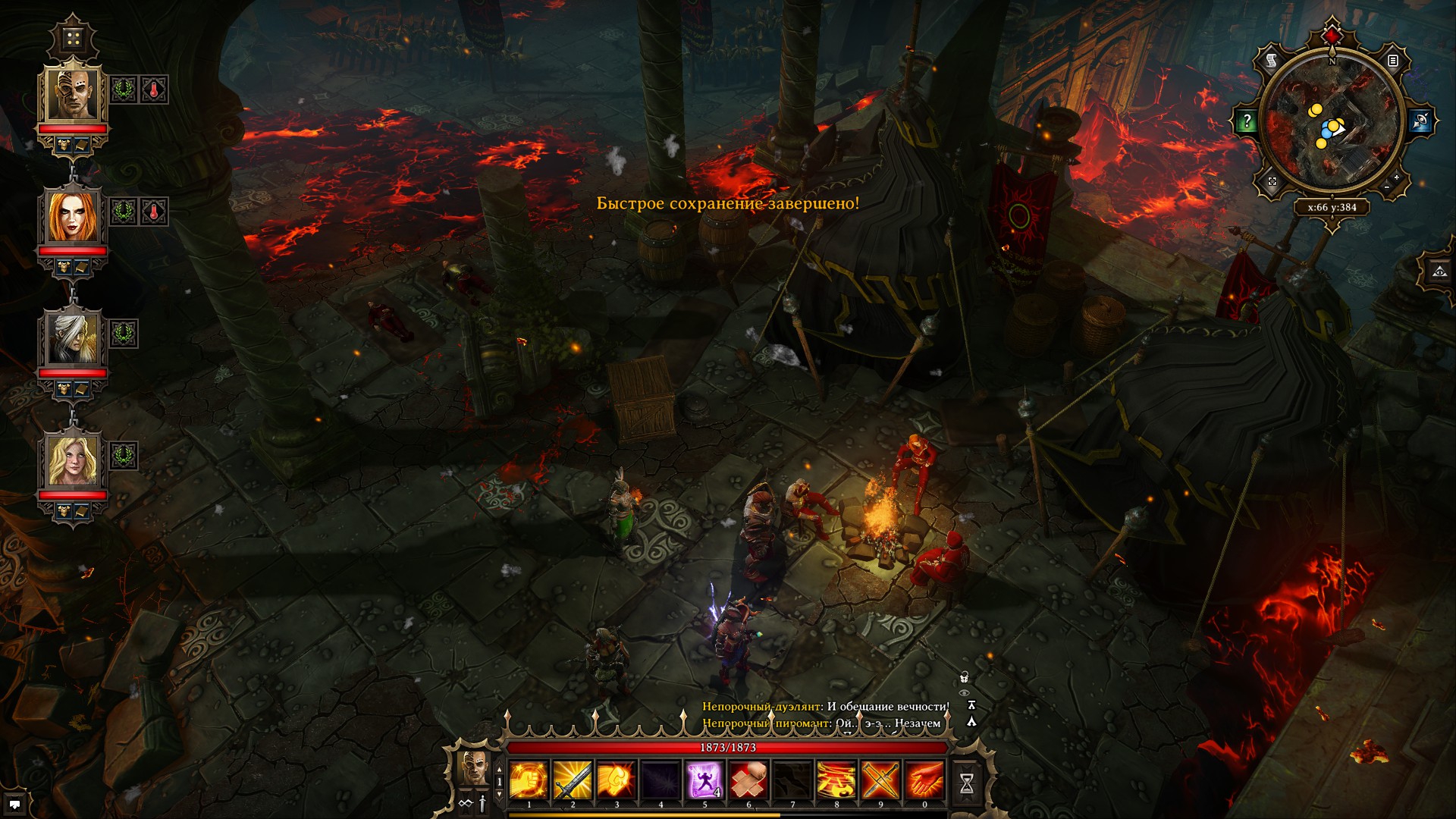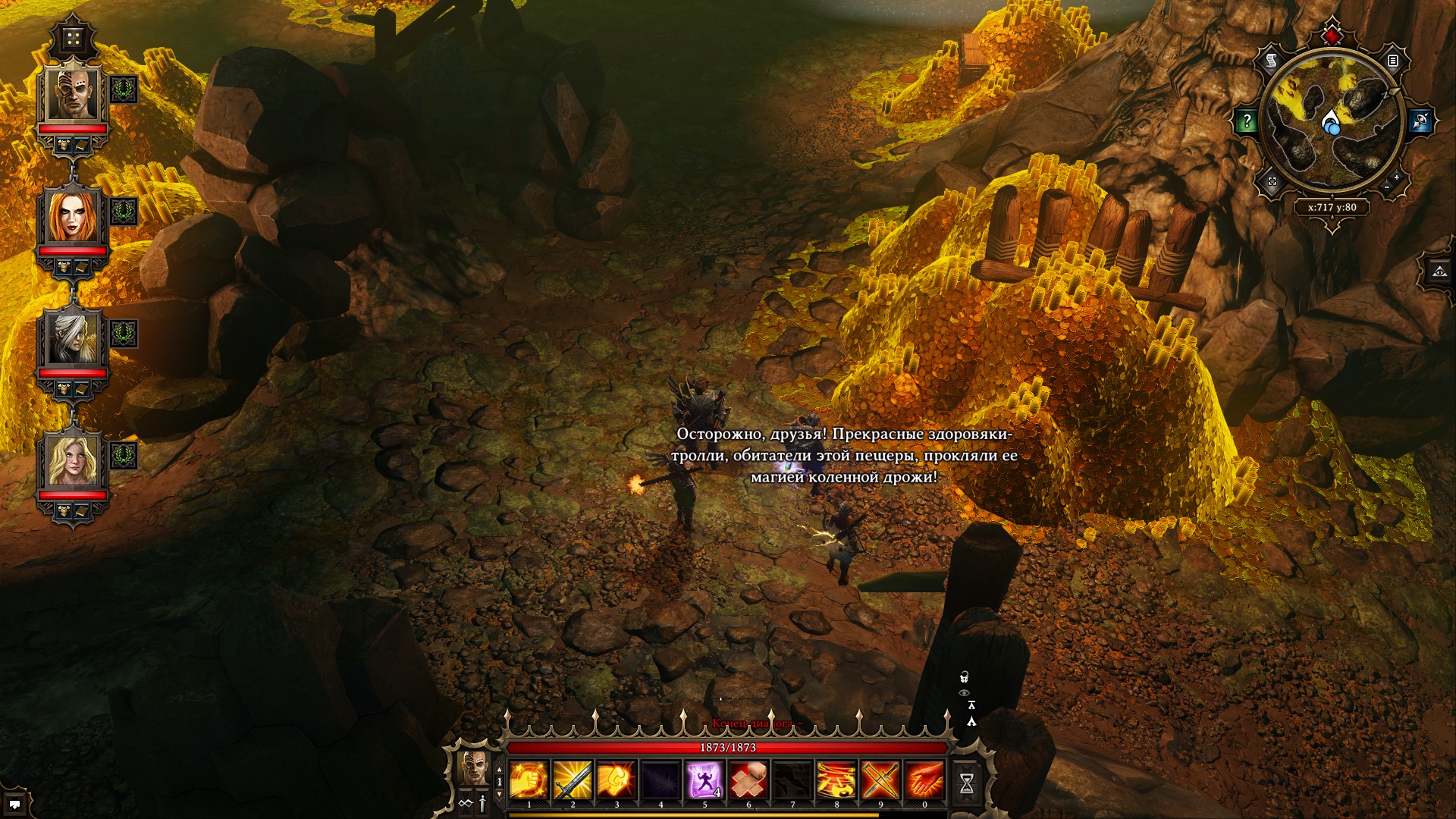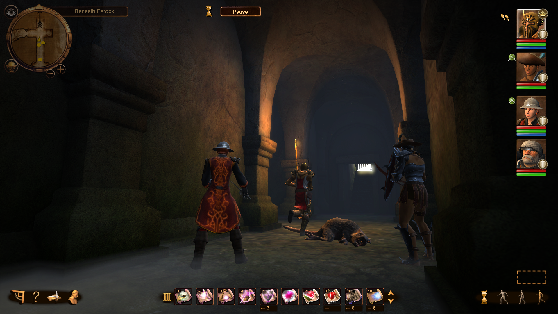 В канализации под Фейрдоком встречаются все 3 типа в единой кишке длинной метров в 100: спева мы гонимся за заскриптовано неуязвимыми врагами которых нельзя атаковать, потом десяток средних бандитов типа 1, следом пара сильных огненных элементаля типа 2; за ними пара крысы типа 1 (уровня же 1 по ощущению), и финальная арене встречает заскриптованным фаерболом в ебало по всему отряду от того же неуязвимого мини боса, при поддержке жостких колдунов личей типа 2.