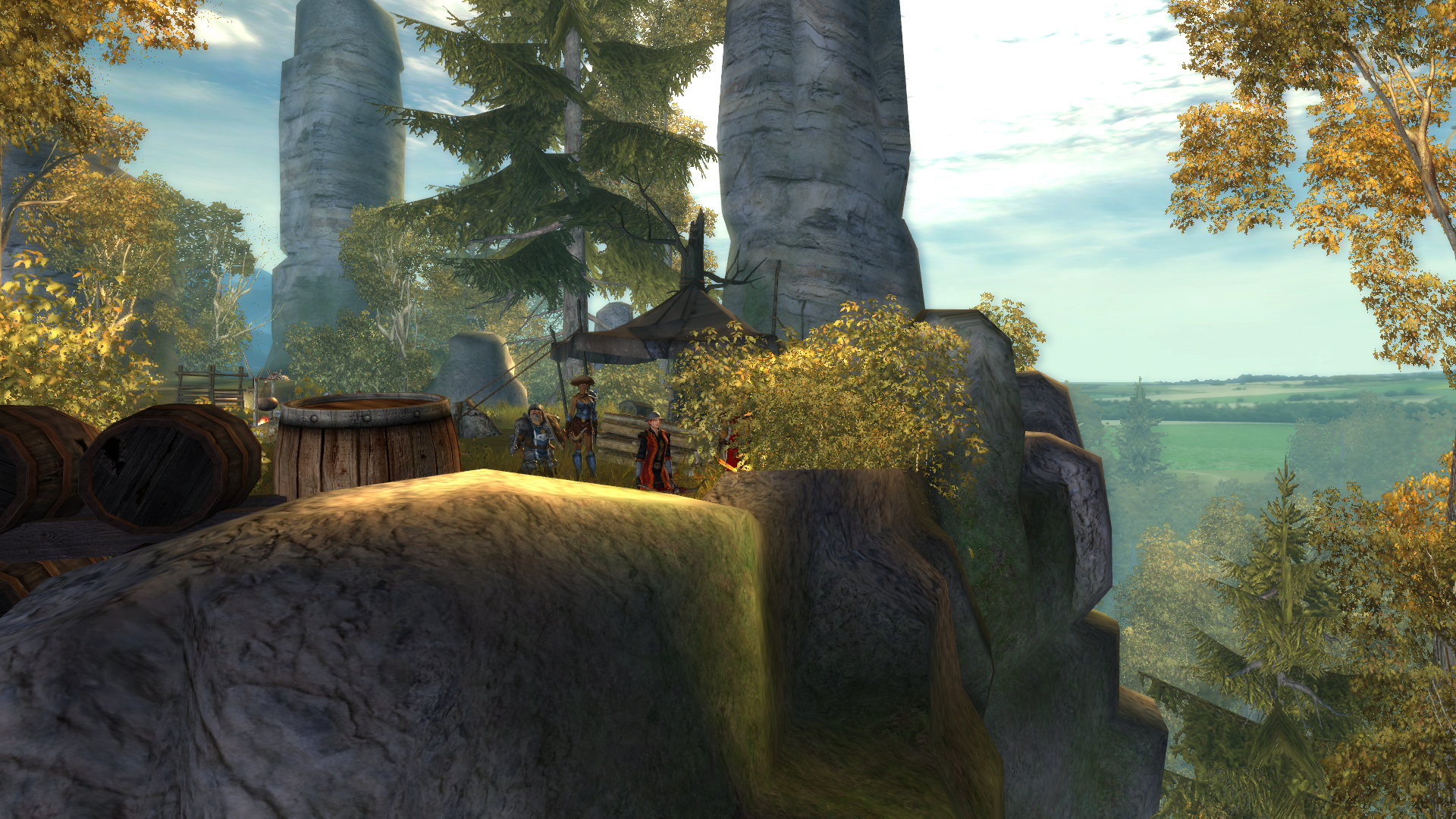 На что не похуй так это на "великолепные" виды который немцы всякий раз пытались отрисовать не имея для этого ресурсов. Впервые заметил что со стартовой локи можно даже разглядеть силуэт безымянной крепости в которой происходят события в середине игры. Казалось бы, зачем вообще добавлять такую мелочь в ворлд билдин, ан вот же, запарился кто-то.