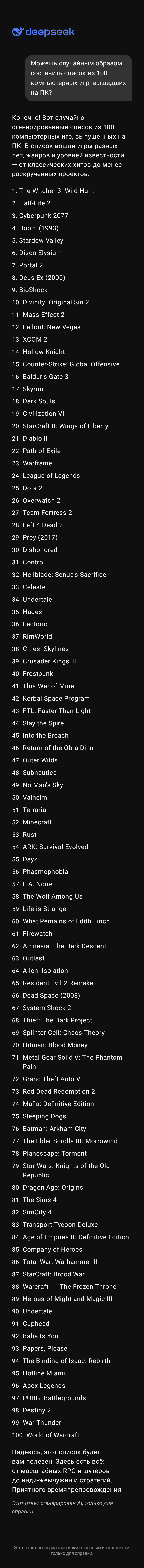 Но вместо этих игр всех времен и народов, что там у нас... >Среди релизов 2025 года: Kingdom Come: Deliverance II расположилась на 15 месте, а Clair Obscur: Expedition 33 — на 82. Пик на 89? Метафор ре фантазио? Сталкер?