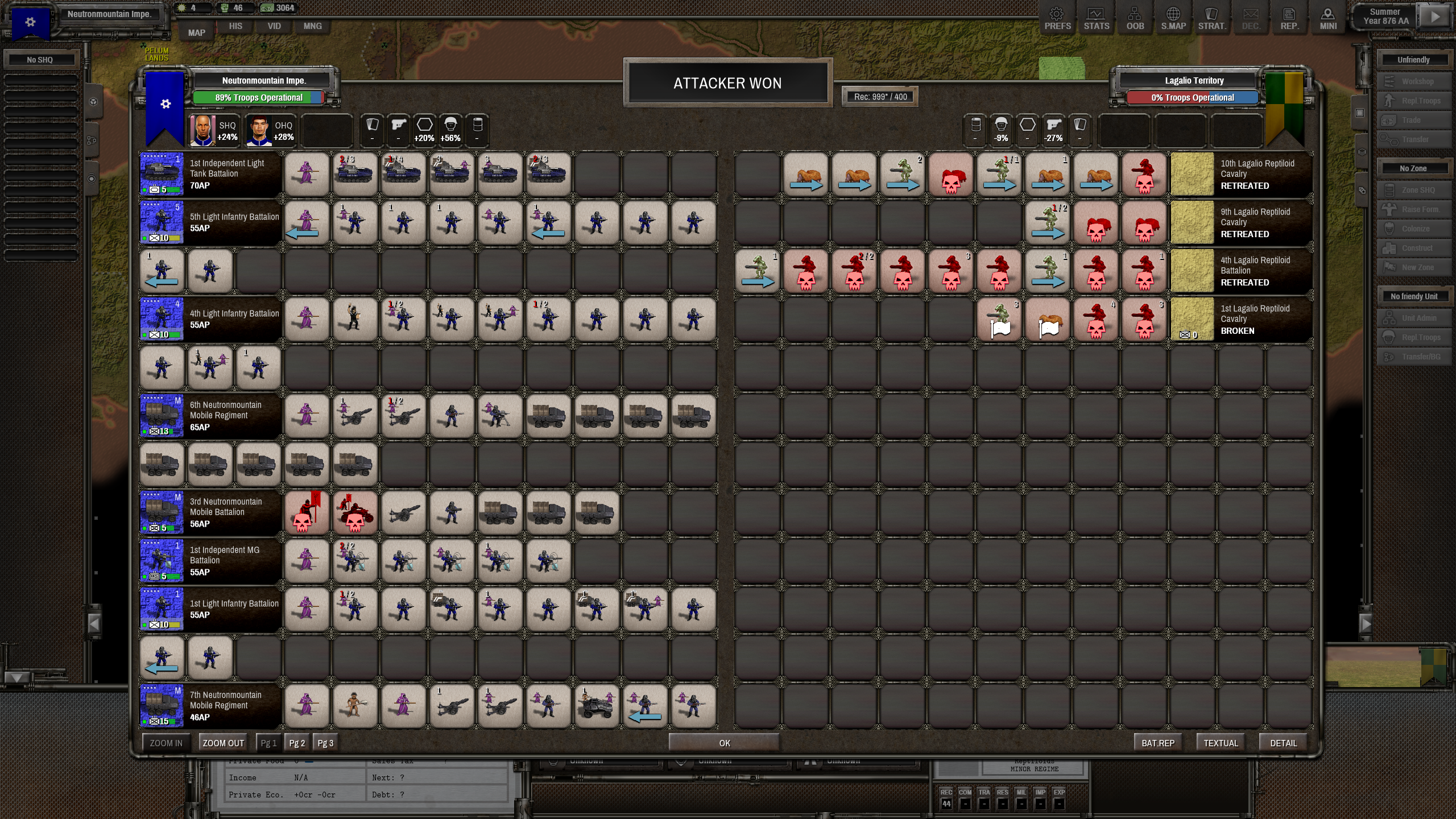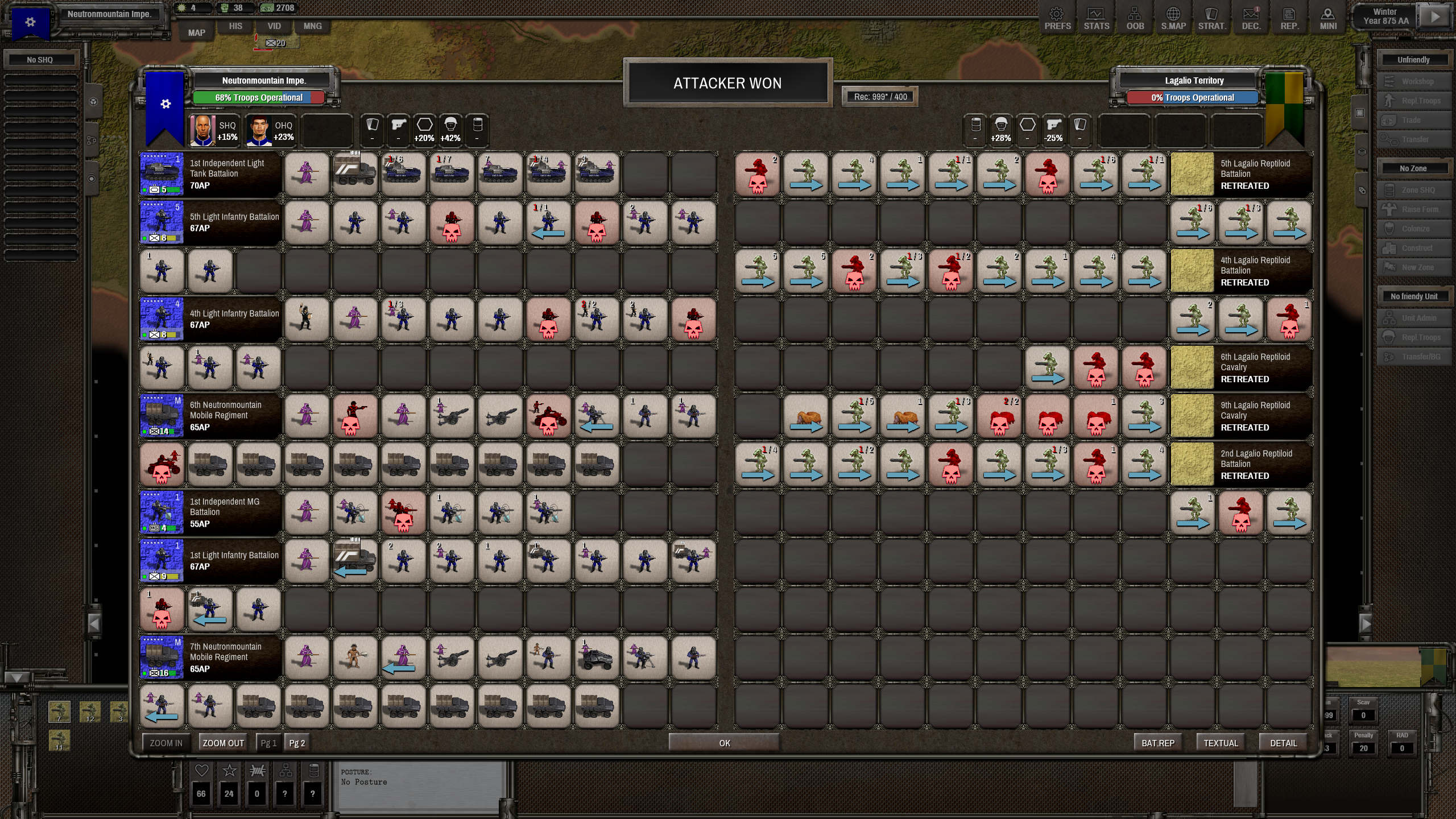 >>9890171 Безбожная рептилоидная война в самом разгаре. Восточный сосед так долго катил ко мне свои танки, что его сожрало государство с севера, а, вот, рептилоиды, так лютовали, так и лютуют. Раскидать их нормальными группам войск не составило бы проблем, вот только тут не то, что не до полноценных армий - тут даже стрелять нечем. Так хуево с ресурсами, что вместо автоматов воюем газовыми карабинами, экономя патроны. Какая-то бесчеловечная во всех смыслах война.